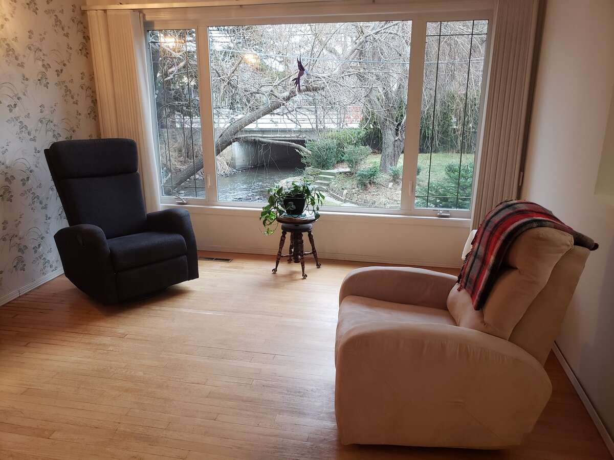 South Kelowna Central Location. Enjoy the morning sun on the east facing front deck that overlooks Mill Creek. The home is set back from the street and has considerable privacy with lush greenery and your very own bridge. It was substantially renovated in 1999 and has an open floor plan with custom maple kitchen cabinetry. There are 2 large bedrooms upstairs with the main bathroom situated between them. The master bedroom boosts a bright en-suite with a vaulted ceiling, sky lights, his and her sinks, a corner jacuzzi tub, and an extra closet. The basement has a nice sized rec room, one bedroom, and a massive workshop for the handyman. For parking you have an oversized single car garage, an attached carport, and room for 3 additional cars in the driveway. The west facing backyard gets lots of sun and has a small garden and raspberry bushes. If you are looking for revenue, there is potential for a carriage house. Bike lanes are right out front so you can easily walk to KGH, downtown, and Capri Mall. This home is truly one of a kind. Come take a look and you won't be disappointed.