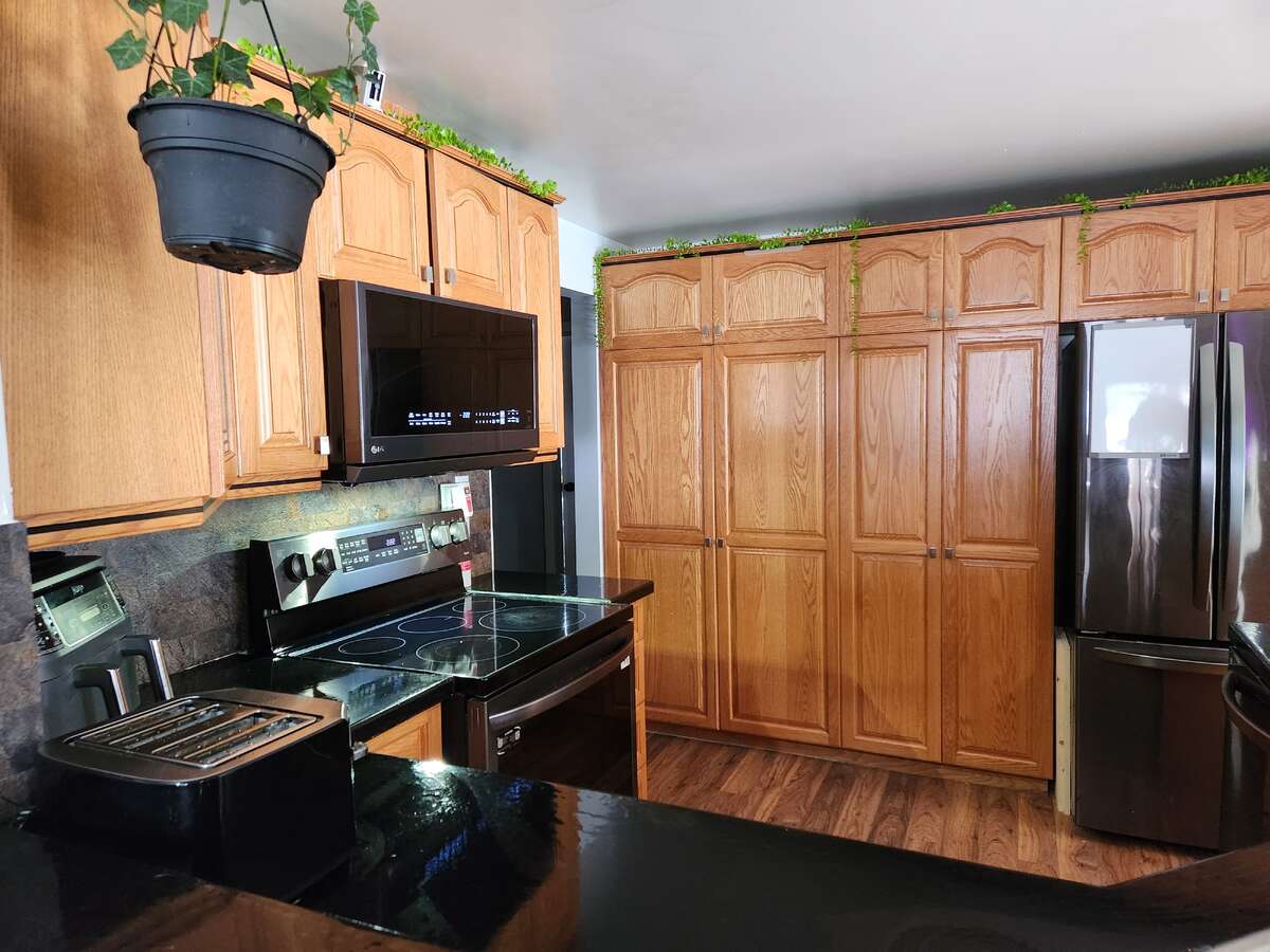 Enjoy a bright and practical kitchen with ample cabinetry, stainless steel appliances.