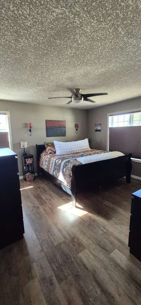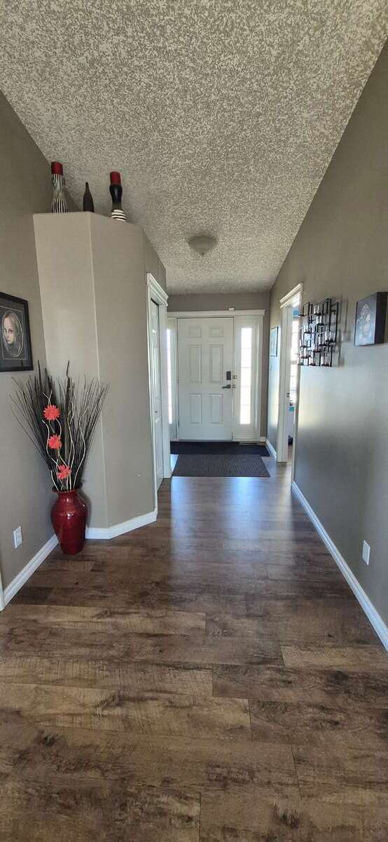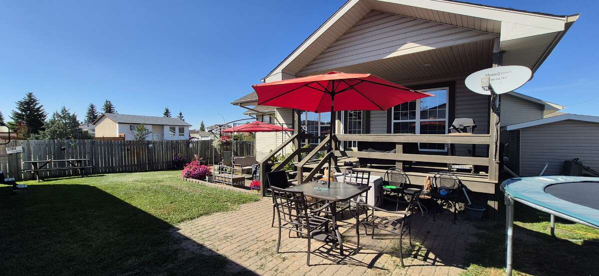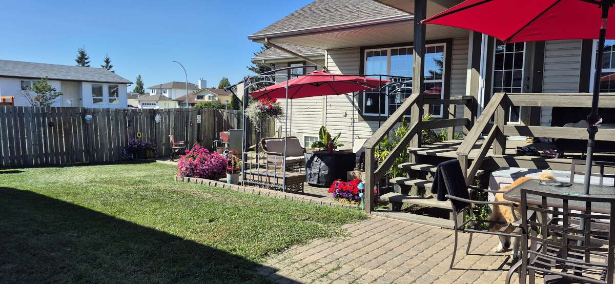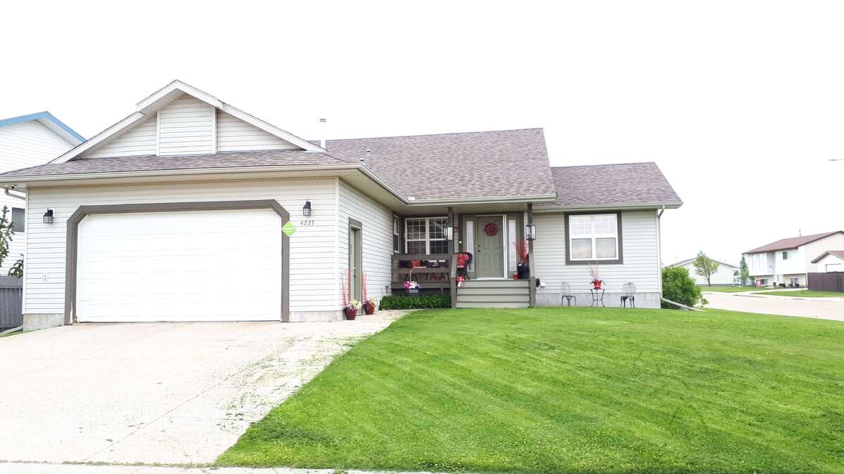 Welcome to this beautiful open concept raised bungalow. This home features vaulted ceilings, large island in the kitchen, new flooring, central vacuum, all new appliances, 2 new hot water tanks, in-floor heating in the basement and much more. There are 2 bedrooms on the main floor, open living room, huge kitchen and 2-piece bathroom. The Master bedroom has a walk-in closet and 3-piece ensuite. The fully finished basement has 3 bedrooms, large living room, 4-piece bathroom and a bathroom with a sauna. There is a flex area and a large utility / laundry room that complete the basement. The exterior boasts a covered porch on the front, covered deck in the back with a lower deck as well. The property is fully fenced and very private as it is located at the edge of town. There is a double attached garage (24x26) that has lots of storage space.