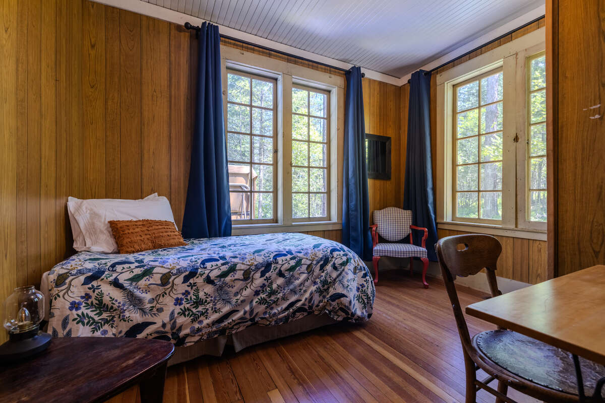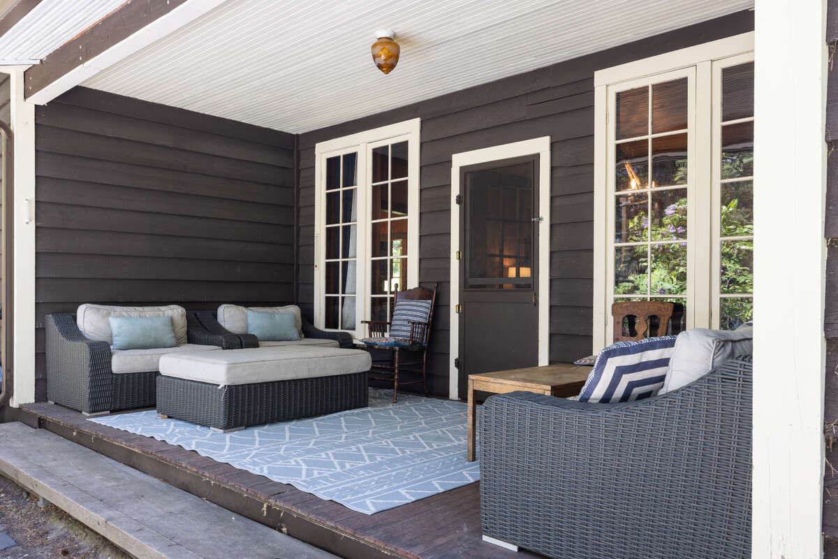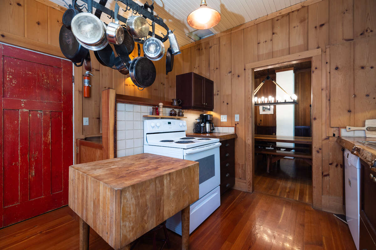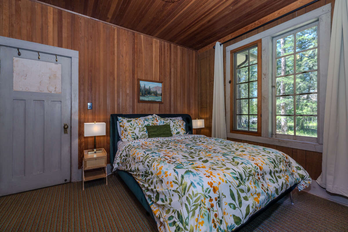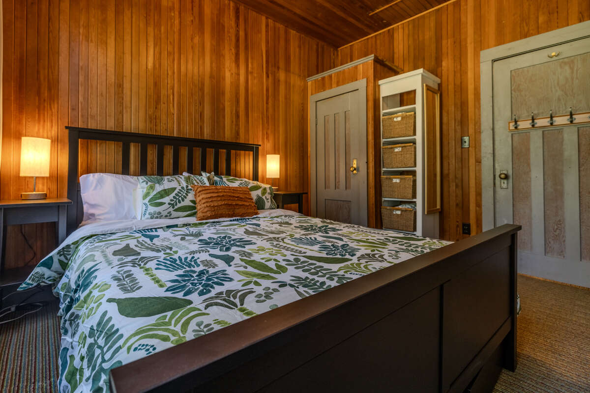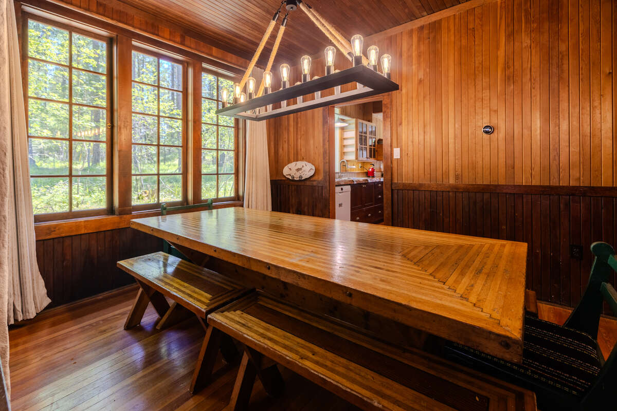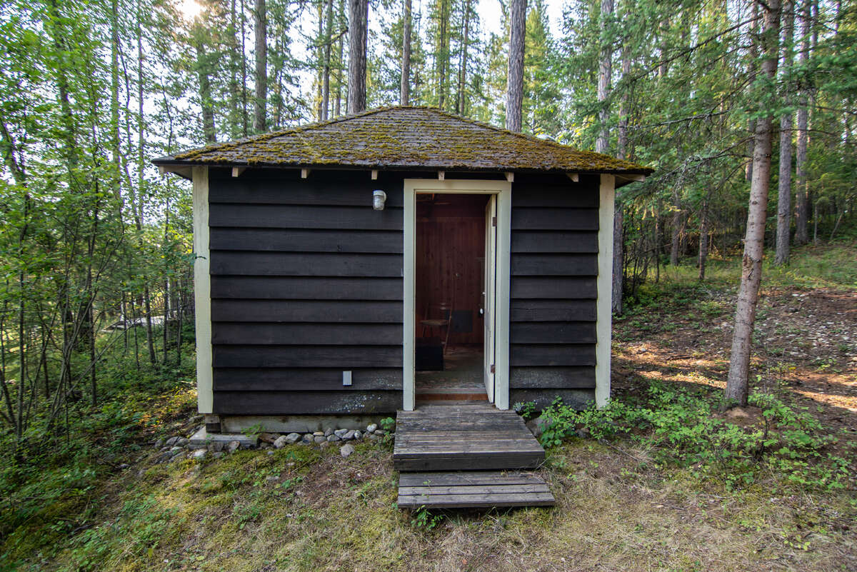 The main residence, built in 1926, is a 4-bedroom, 1-bathroom character home with spacious living and dining areas framed by lake views. A covered patio overlooks the water. Three additional sleeping cabins on the property provide flexible guest or rental accommodation, each with electricity and heat. A separate outbuilding offers storage and a half bath.