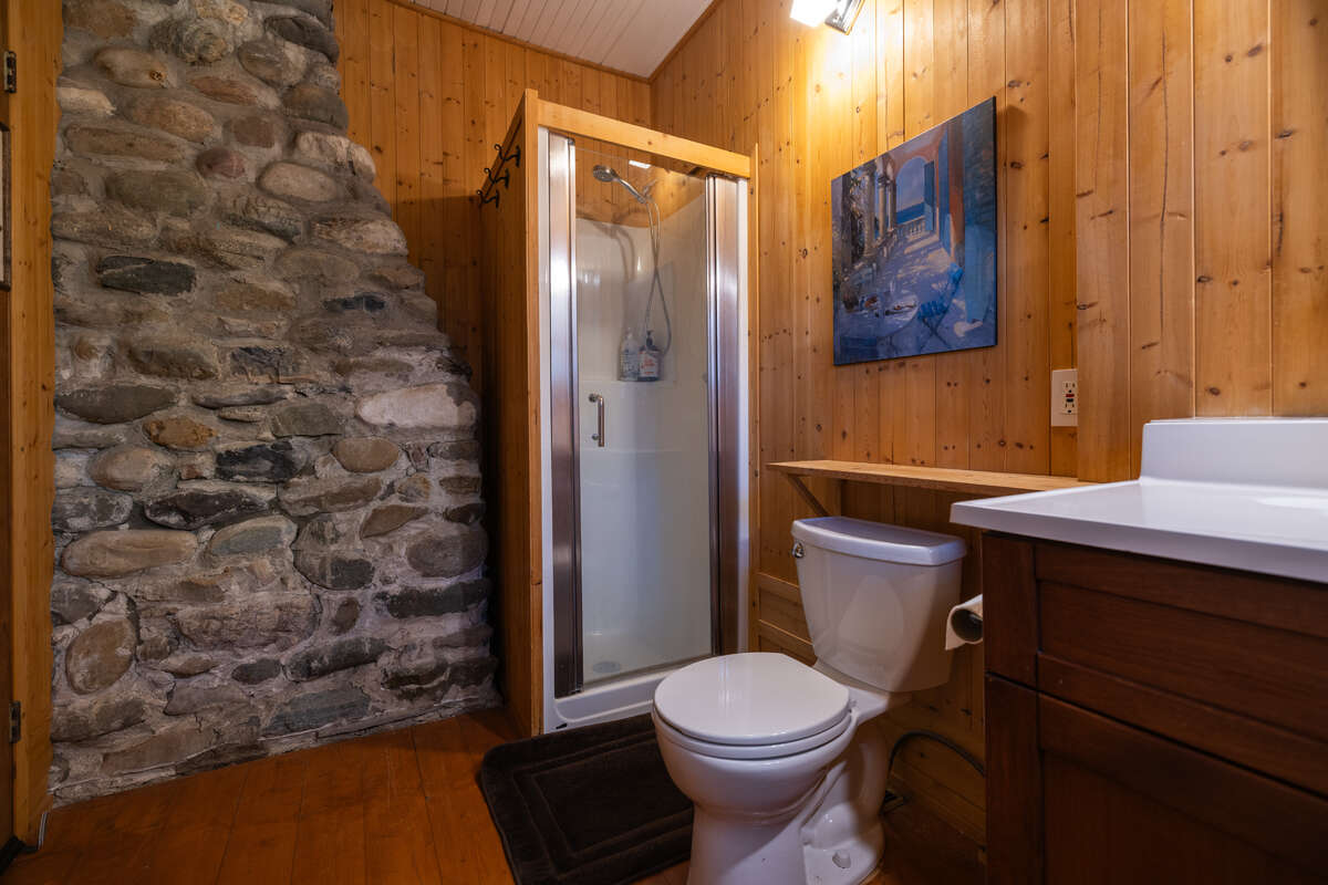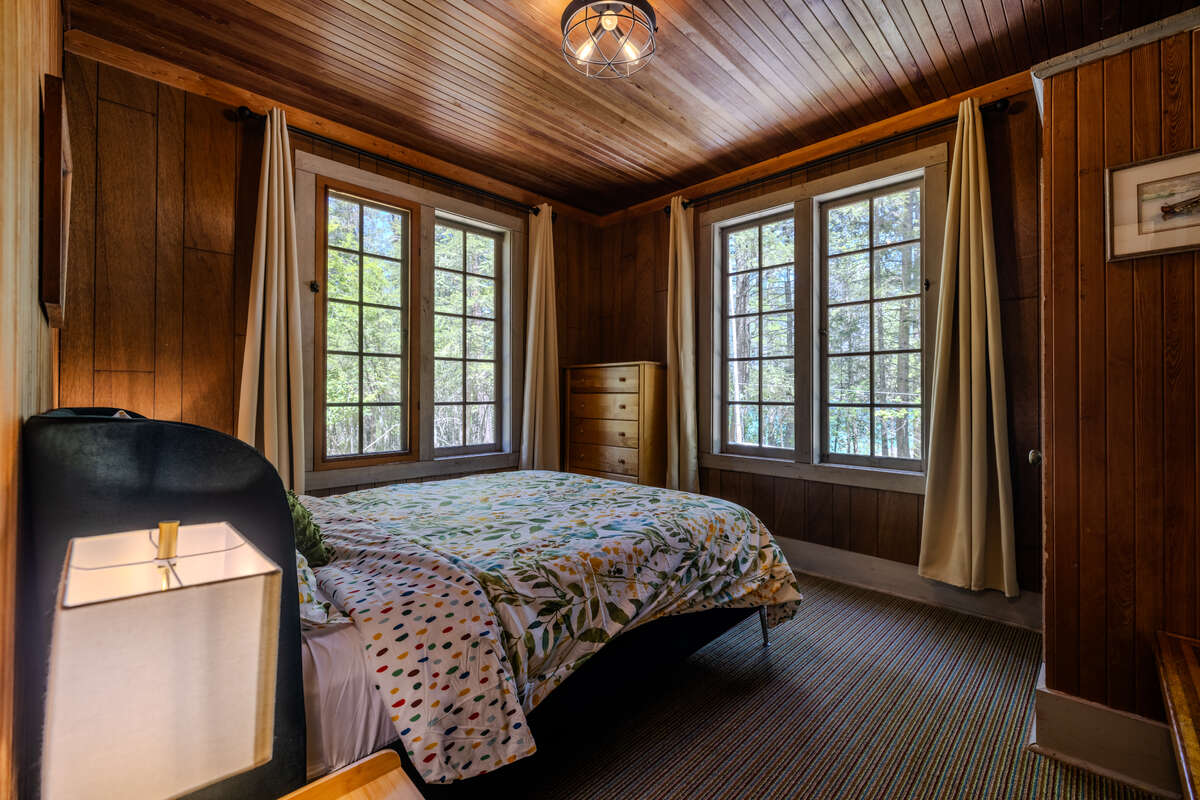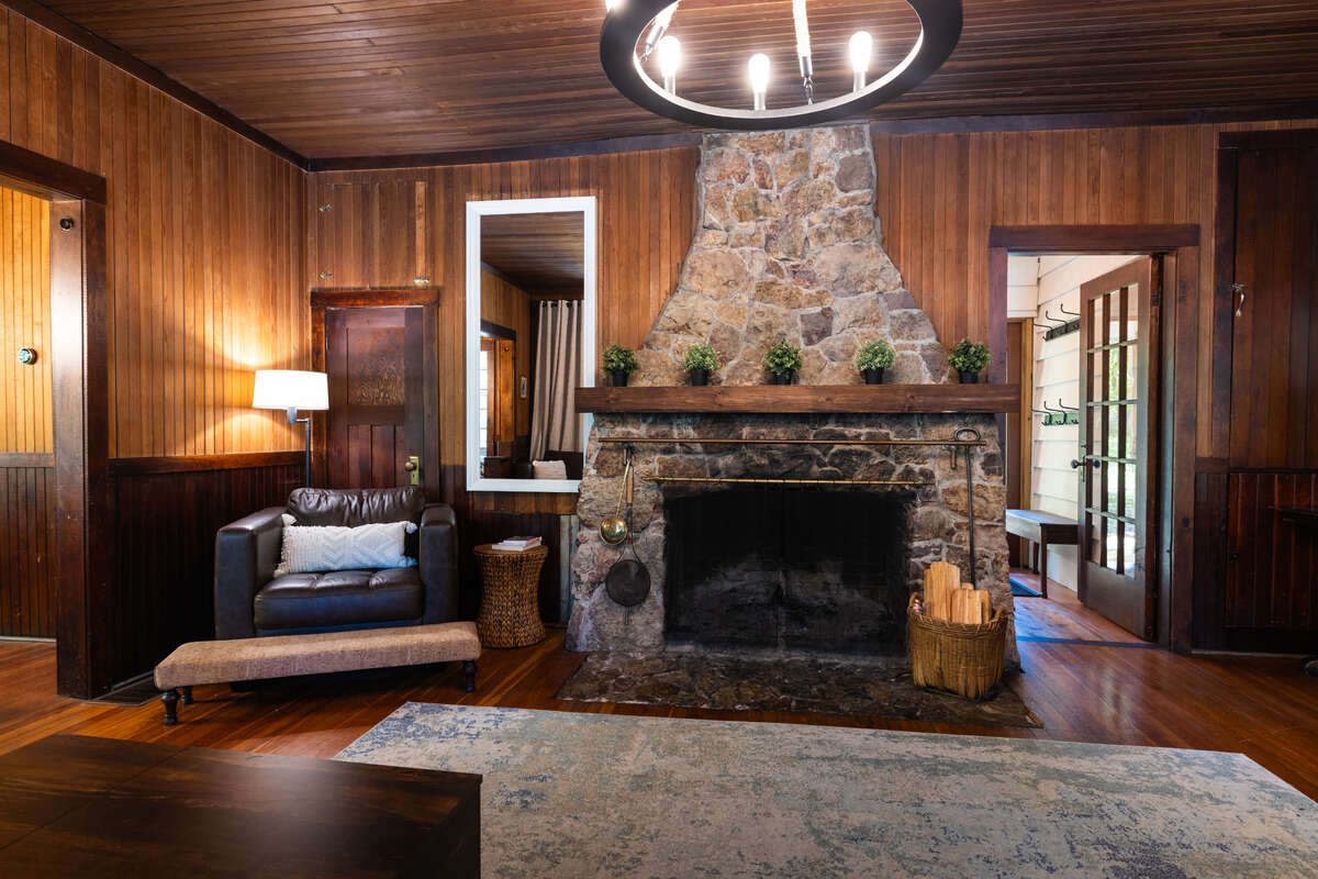 The waterfront is the centrepiece: a large private dock and covered boathouse provide direct lake access for fishing, swimming, paddling, power boating in the summer and hockey, ice skating, and ice fishing in the winter. Rosen Lake is spring-fed with crystal-clear water, home to painted turtles, loons, and resident deer that wander the property.