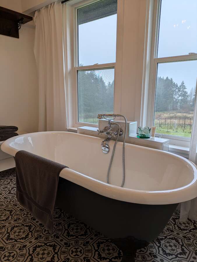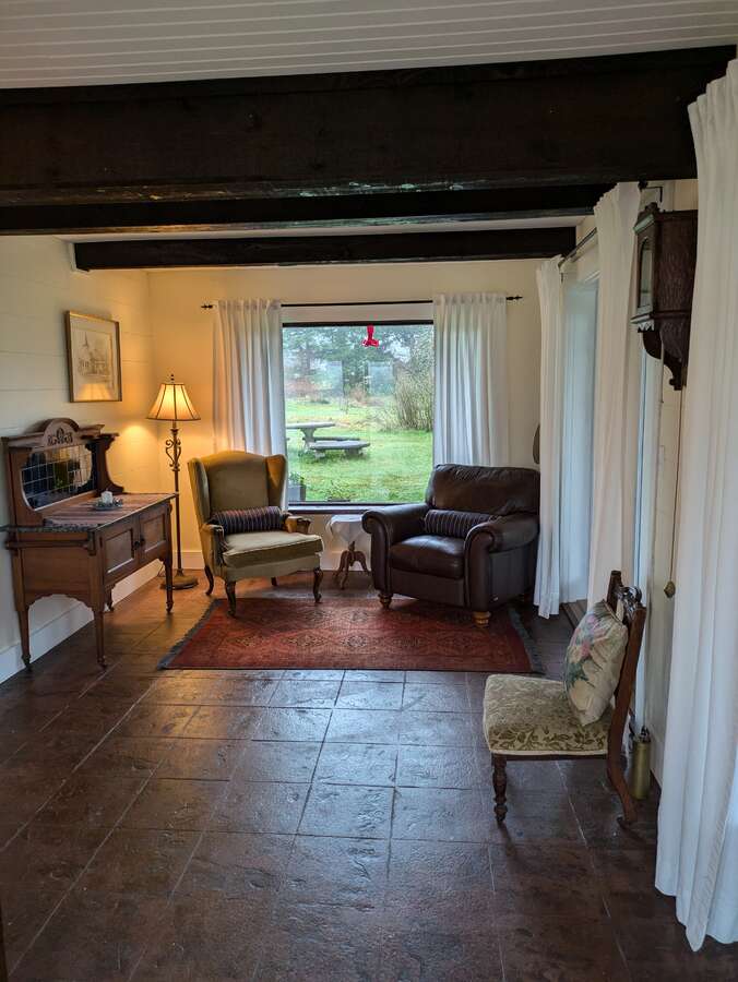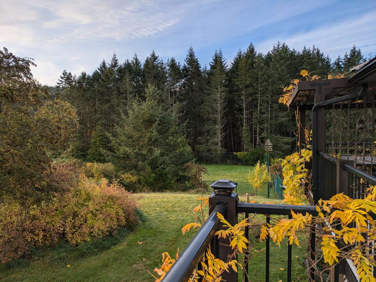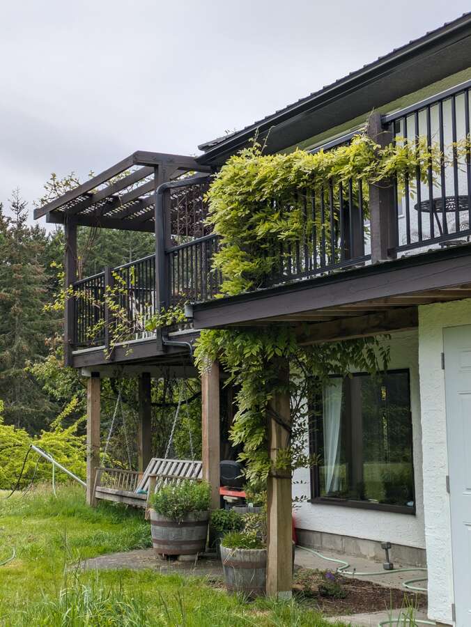 The driveway winds down through a forest, past a pond and opens up to reveal cleared pastures with a sunny southern exposure. A 3 acre fenced area surrounds a tastefully renovated, 2400 sq ft, tuscan inspired 2 storey farmhouse. Each level is fully contained so renting out a floor may be a great mortgage helper option or perhaps for a Bed and Breakfast. There are 3 bedrooms and 3.5 bathroom in total, all bathrooms are ensuite. Upstairs the spacious living room leads out onto a large 470 square foot deck with views that face both up valley and down towards Galiano Island and a great place to watch the sunsets and passing deer herds. It also overlooks the old tennis court and vineyard. Here you can enjoy peaceful mornings amidst grape vines and savour the tranquility of rural life.