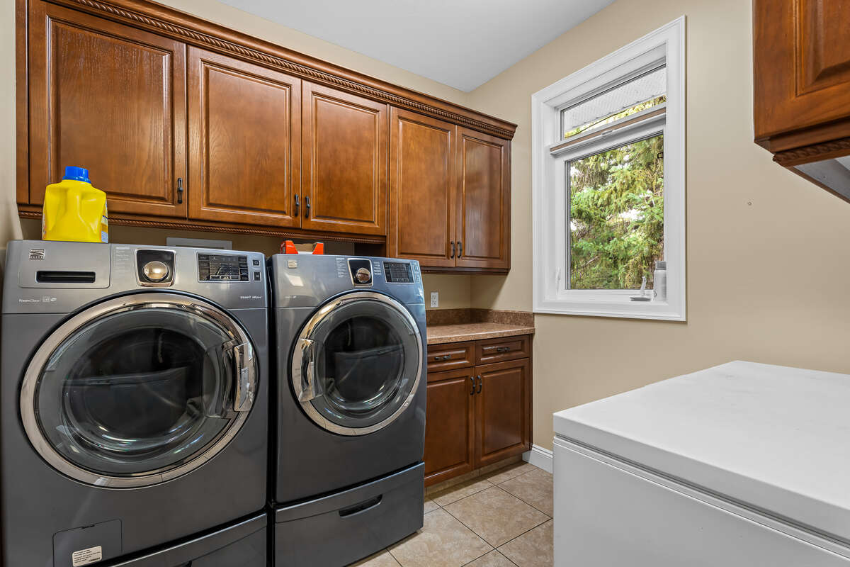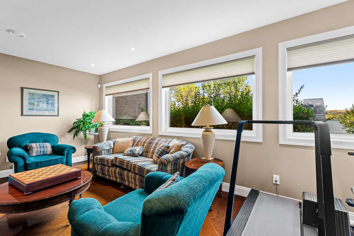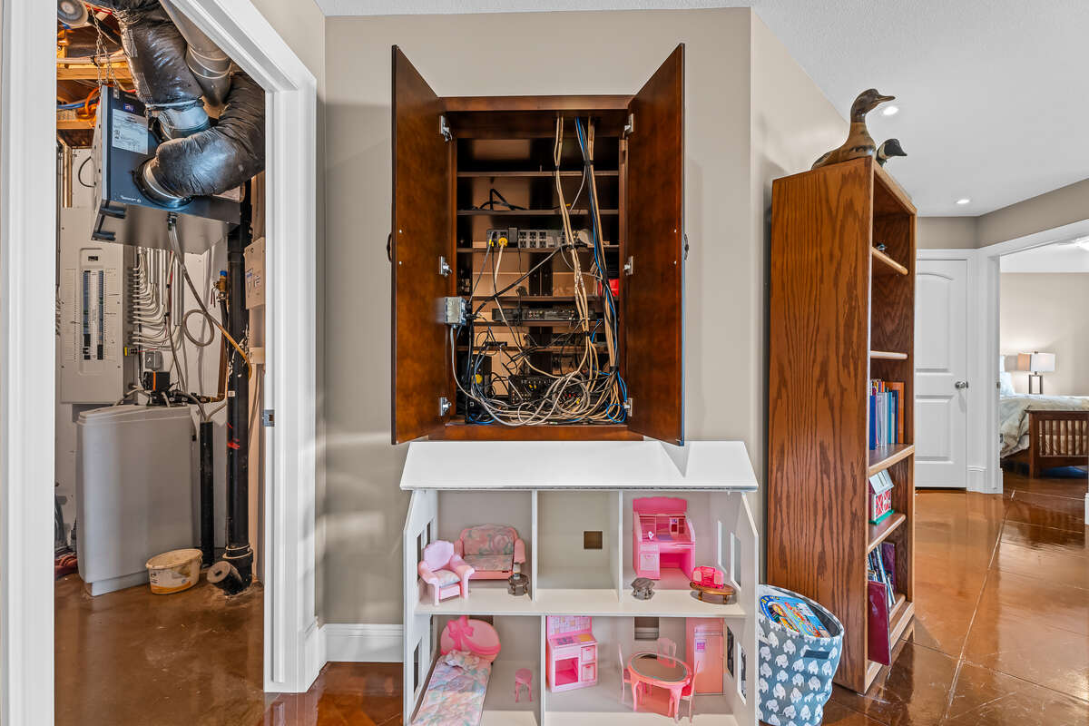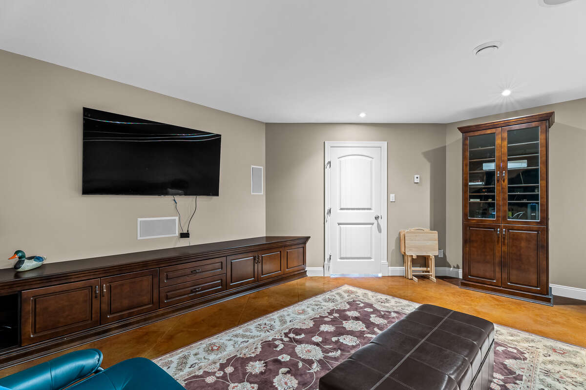 The fully finished lower level is designed for both relaxation and entertaining. Infloor heating complements a spacious bar area and media room with built in cabinetry and surround sound. Two large bedrooms, abundant storage, a wine cellar and cold storage room provide both convenience and functionality. Walk-out access leads to a beautifully landscaped yard and patio wired for a hot tub.