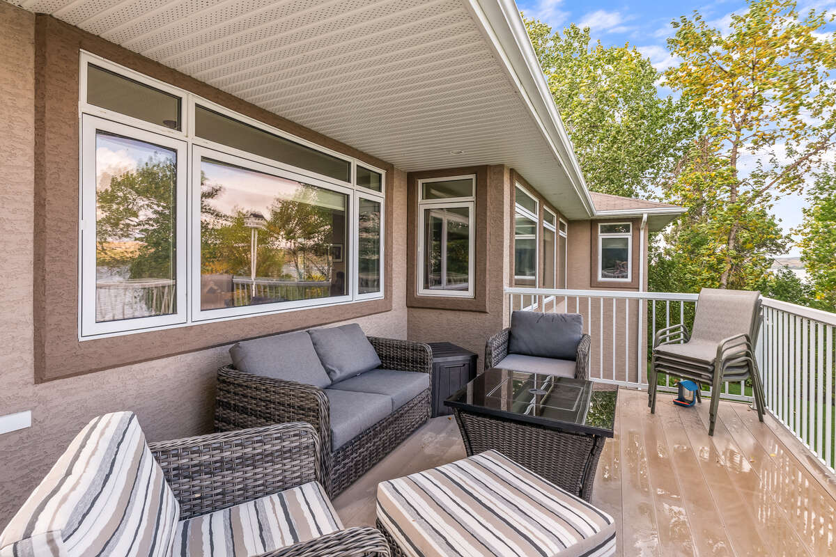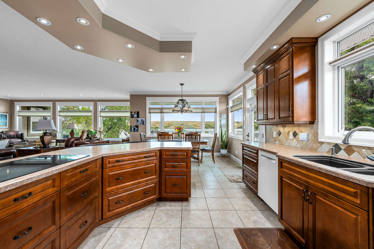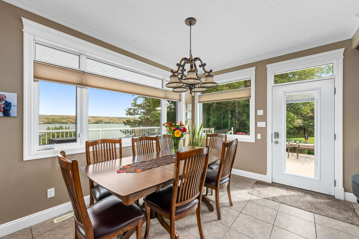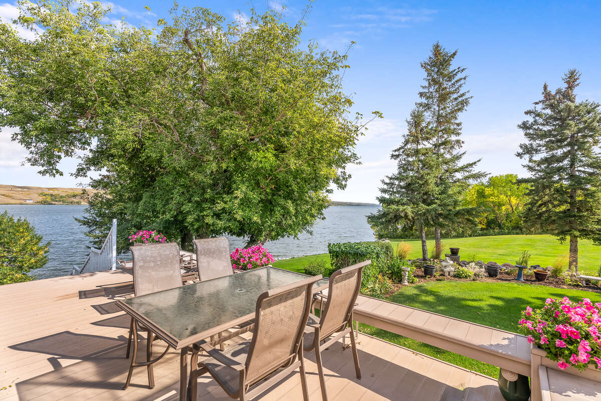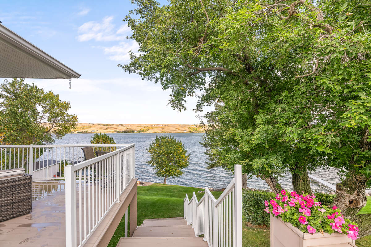 From the kitchen exit onto the expansive composite deck, an ideal space for outdoor dining, entertaining and taking in the sweeping lake views.