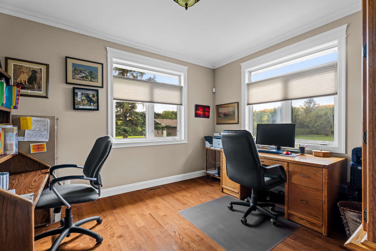 A welcoming foyer and open stairwell create an impressive entrance. This is complemented by a spacious office easily convertible into an additional bedroom. The heart of the home is the open concept chef's kitchen showcasing meticulous attention to detail with custom cabinetry, a walk-in pantry, large prep and serving island, double ovens and built-in compactor.
