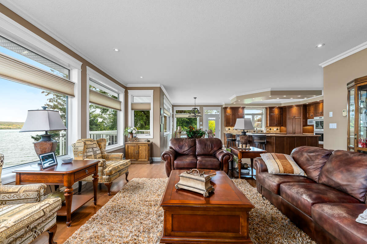 Experience lake front living in this exceptional custom home set on 1.4 acres of beautifully landscaped property with breathtaking panoramic views of the lake and surrounding horizon. Offering 3600 square feet of thoroughly finished living space this residence blends elegance, craftmanship and comfort in a truly relaxing setting.