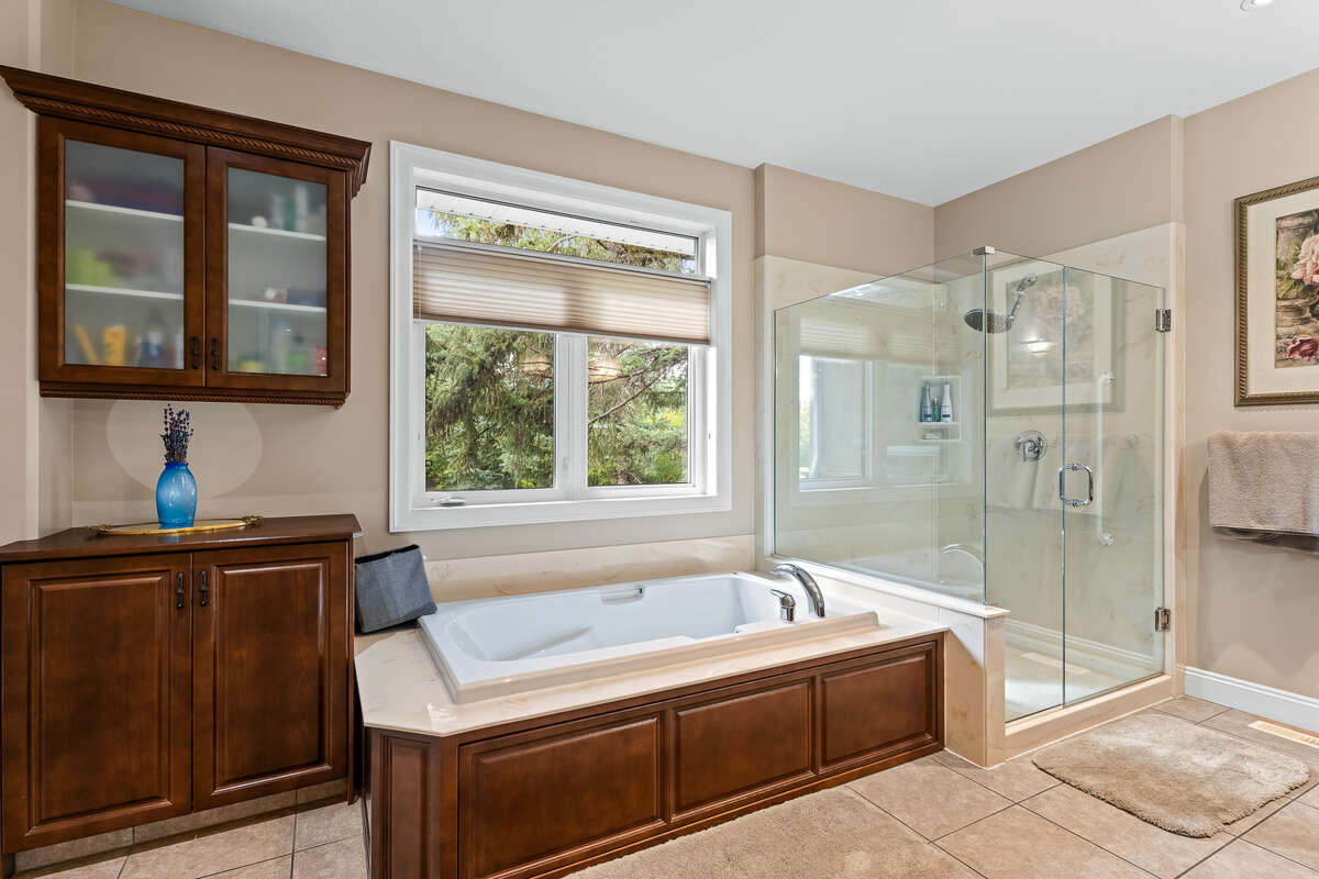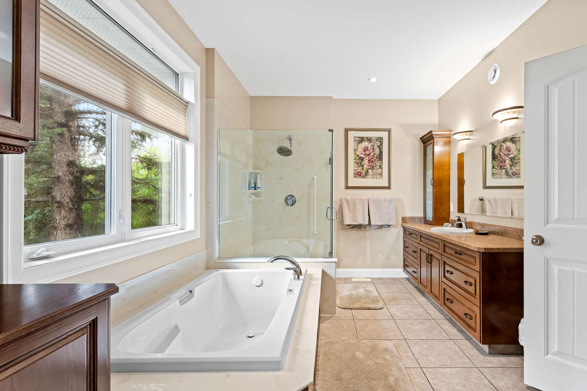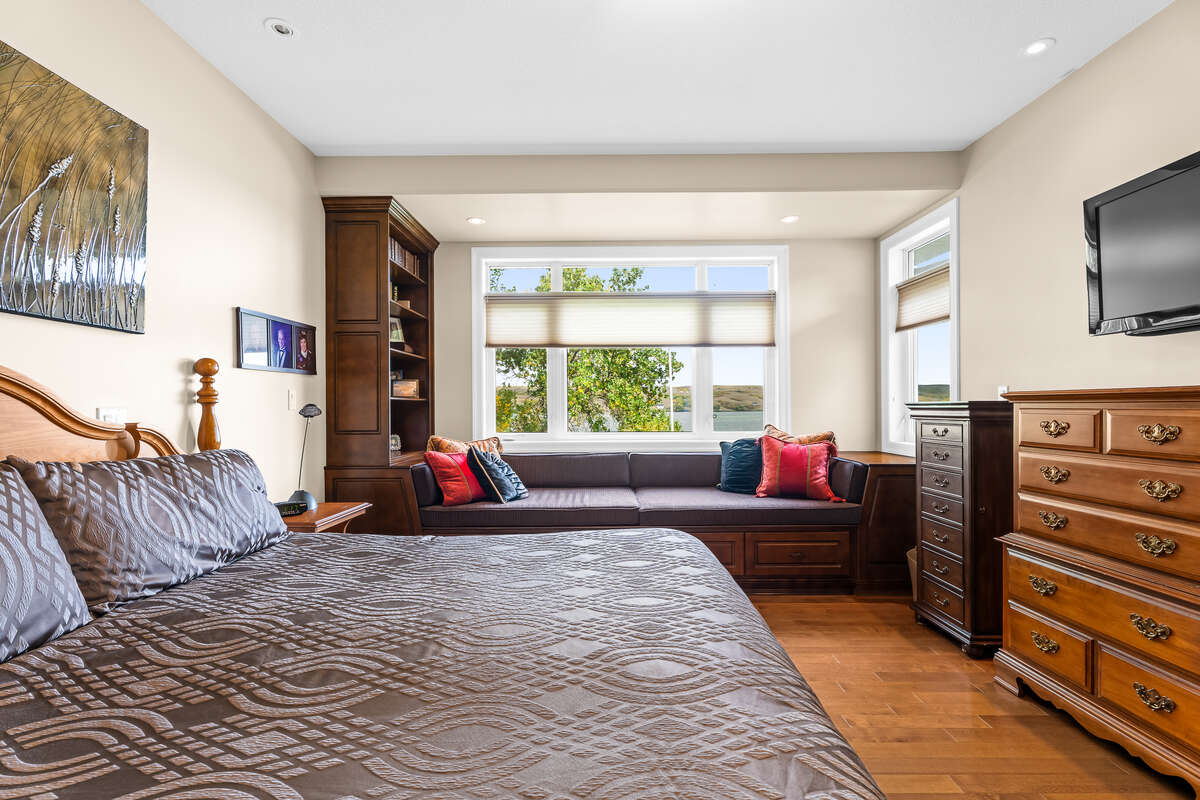 The primary suite serves as a peaceful retreat, offering a spa inspired ensuite with a large walk-in closet and a charming window bench perfectly positioned to capture the home's incredible views.