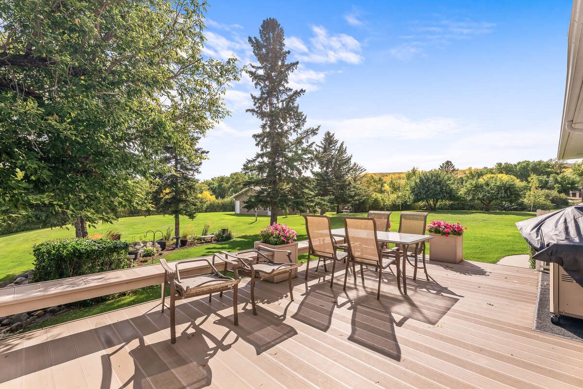 The grounds are equally impressive featuring mature evergreens and apple trees that enhance privacy while redeucing wind and noise. A full irrigation system maintain the park like yard while the expansive driveway and open areas offer ample space for large gatherings, additional vehicles or future enhancements such as a pool or sport court.