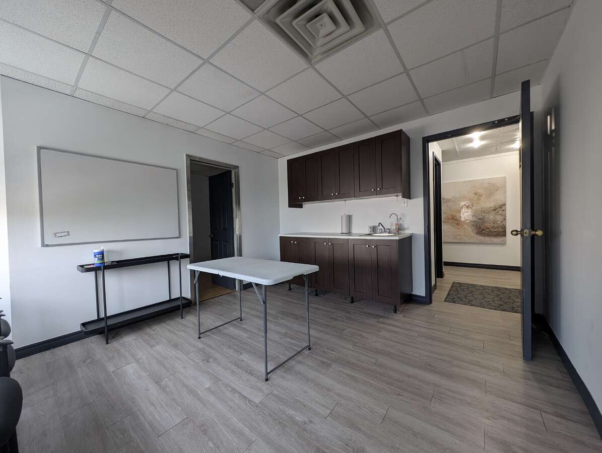 ~2,100 sq.ft. finished office across two floors: reception, boardroom, multiple offices, and common areas.