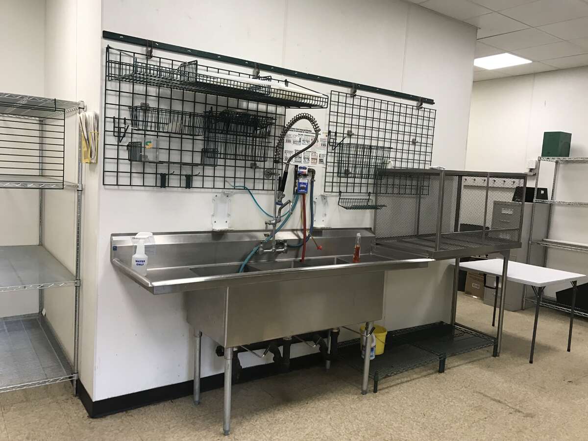 Includes two walk-in coolers, prep stations, sinks, ovens, and all essential kitchen infrastructure. - Customer Dining Area: