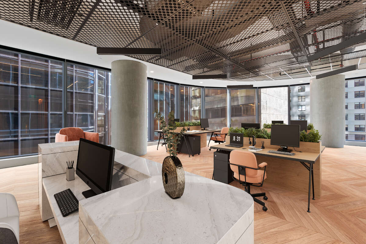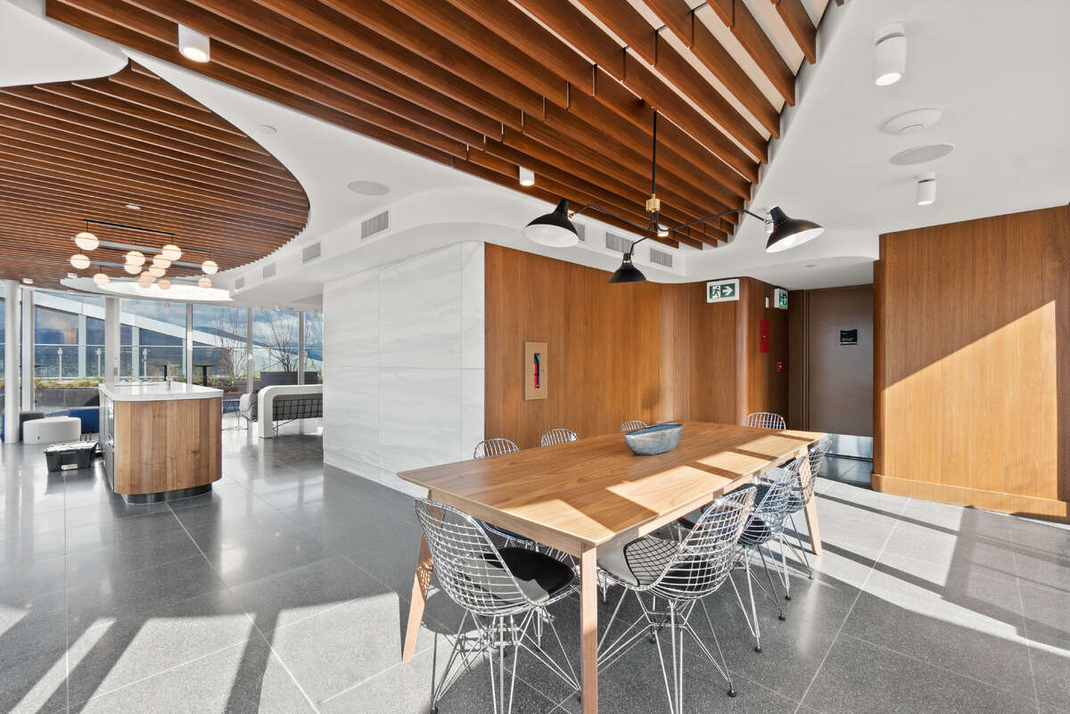 - Central social lounge provides flexible space for casual meetings or creative moments