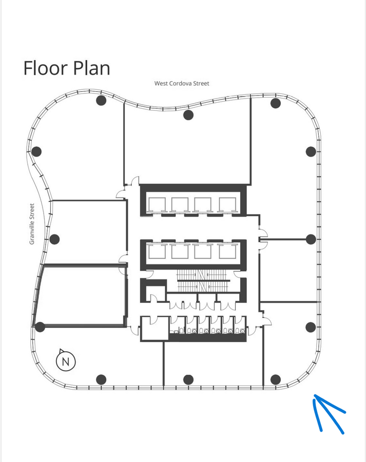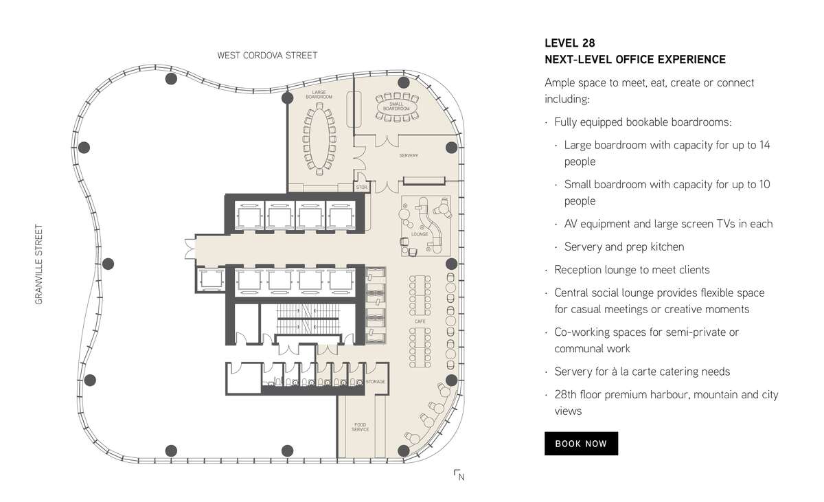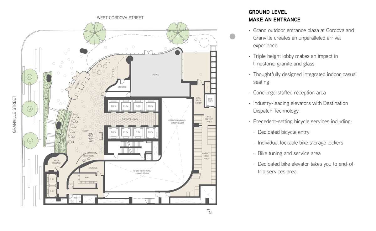 - Grand outdoor entrance plaza at Cordova and Granville creates an unparalleled arrival experience