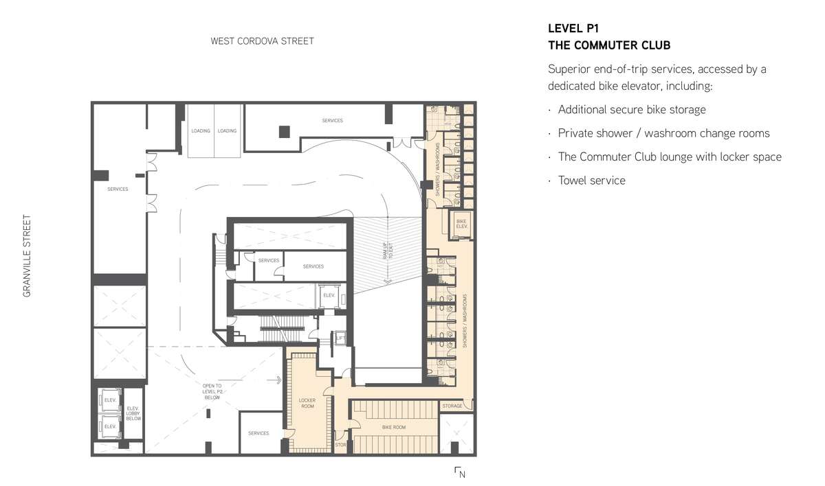 Superior end-of-trip facilities, accessed by a dedicated bike elevator, including: