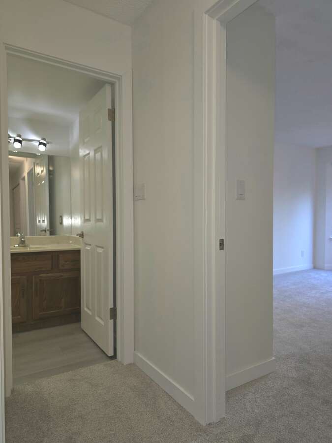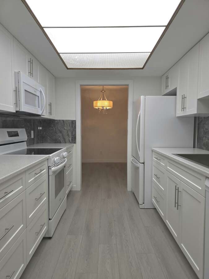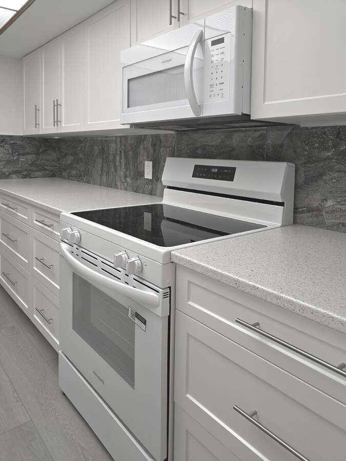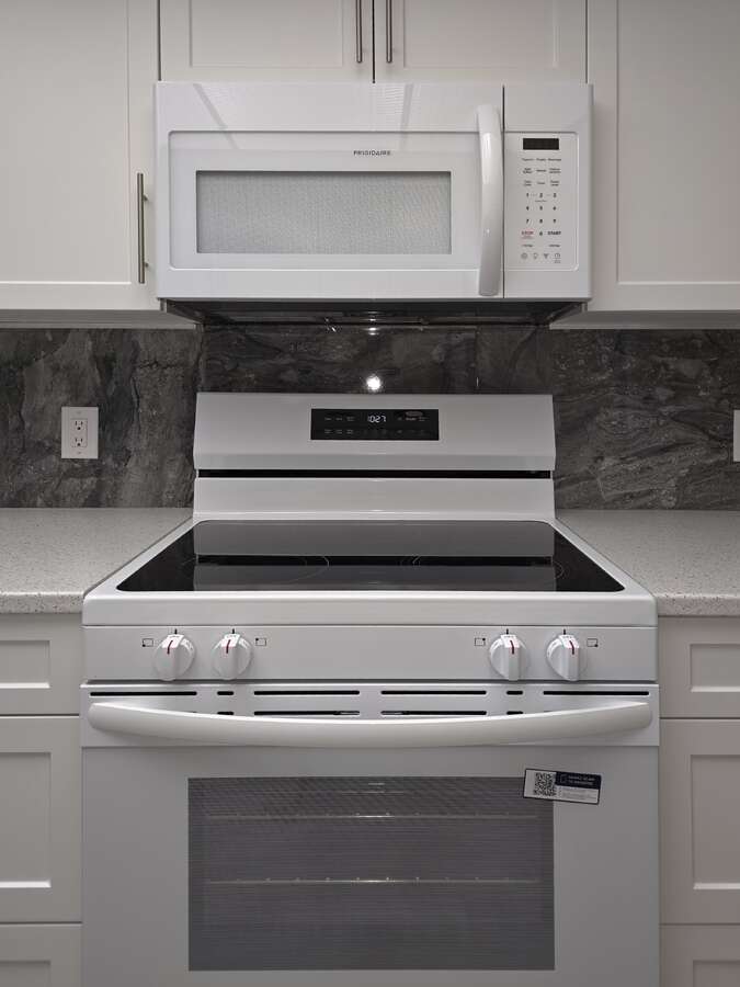 Recent renovations include a completely updated kitchen with brand-new appliances (microwave, range, and dishwasher), fresh wall and ceiling paint, new vinyl and carpet flooring, updated trim and baseboards, and modernized outlets and lighting throughout. Bathroom has also been renovated with new vanity, toilet, hardware and mirror.