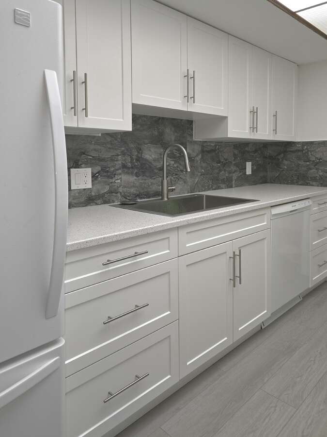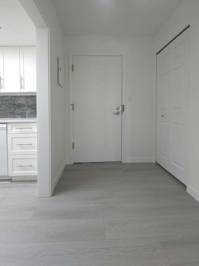 Newly renovated and exceptionally spacious 2-bedroom unit featuring a private balcony overlooking a peaceful courtyard. Located in a 25+ age-restricted complex, residents enjoy great amenities including a social room on the main floor, convenient laundry facilities on every level, an assigned heated underground parking stall (#77), and a dedicated storage unit (#43).