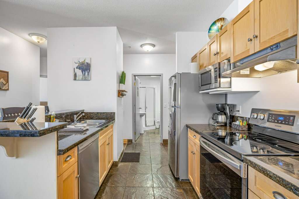 Experience luxury living in this beautifully furnished 2-bedroom, 2-bathroom suite. Located just minutes from downtown's vibrant shops and restaurants, it boasts one of the best locations in town. High-end finishes include granite countertops, brand-new stainless steel kitchen appliances, custom solid wood furniture, and new flat-screen TVs. This mountain retreat also offers in-suite laundry, a balcony with stunning Rocky Mountain views, and a BBQ area with patio furniture.