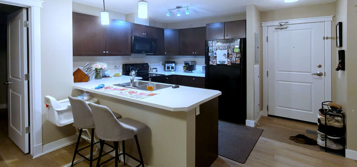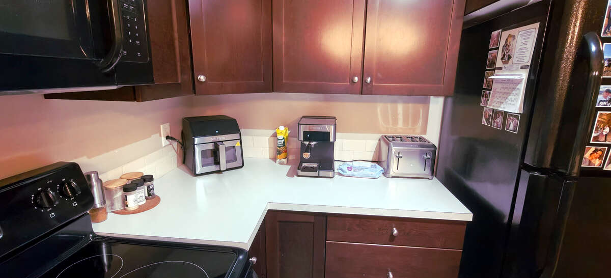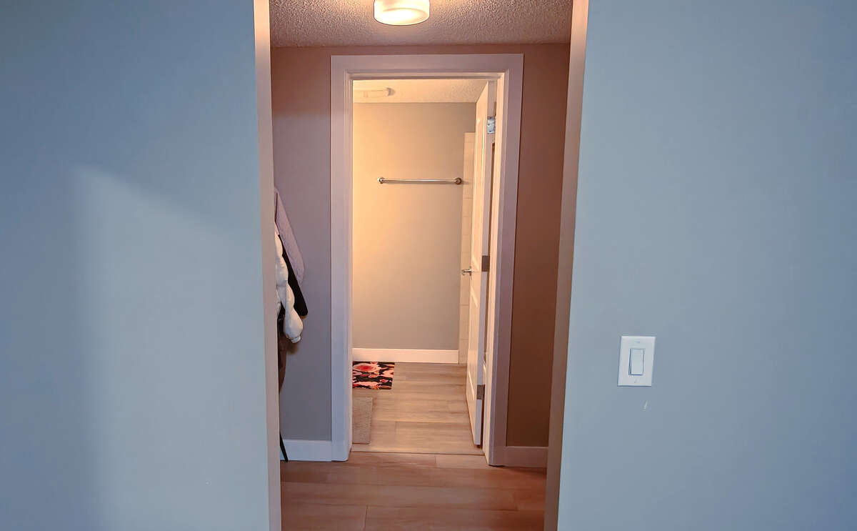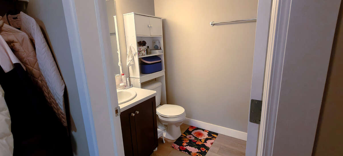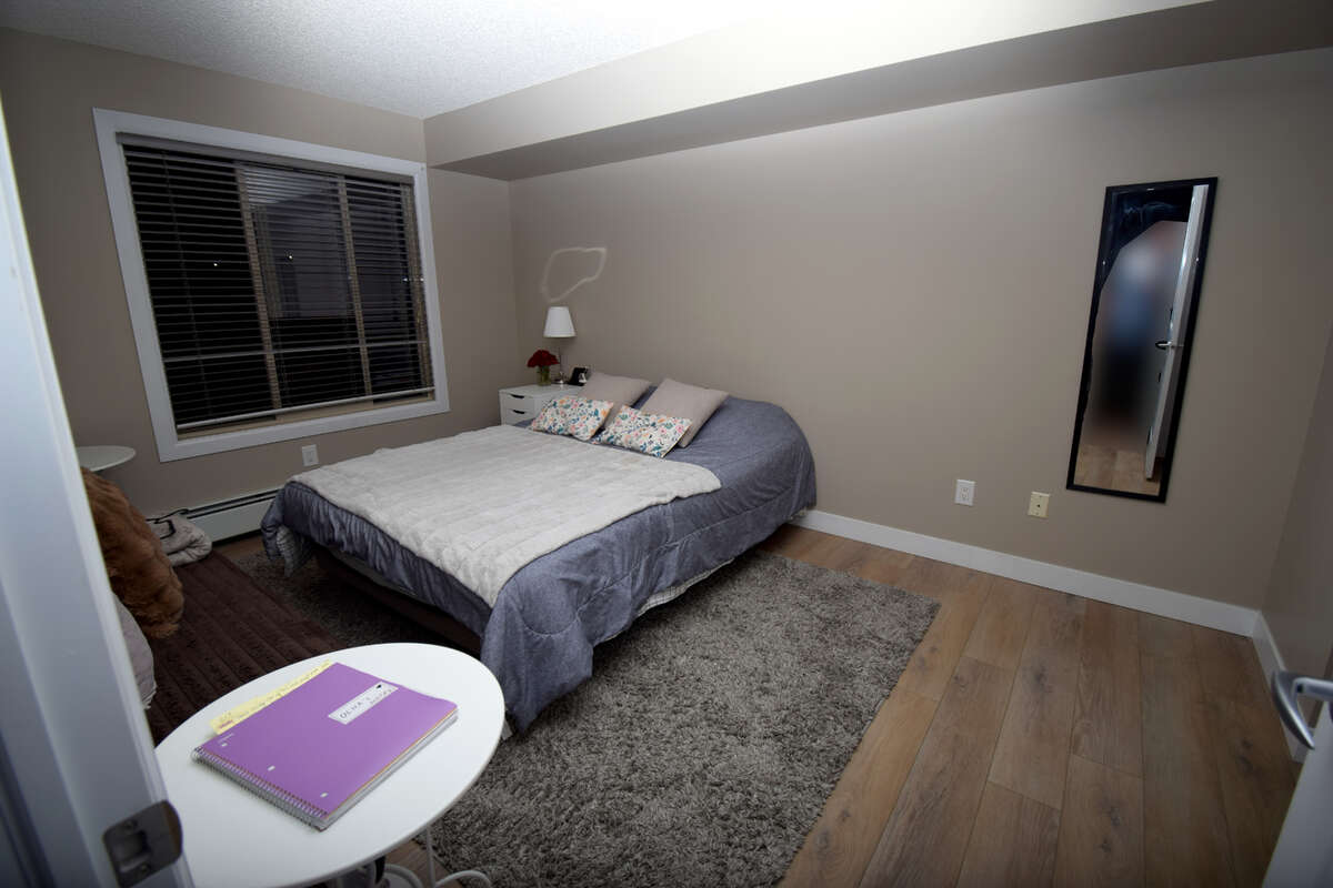 Inside, you’ll find a large kitchen with ample cabinetry, stylish vinyl plank flooring, and in-suite laundry for everyday convenience. Both bedrooms feature their own walk-through closets and full ensuite bathrooms, providing privacy and functionality—ideal for roommates, families, or guests.