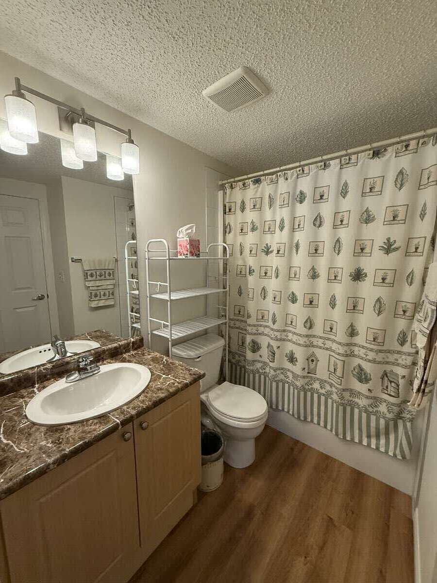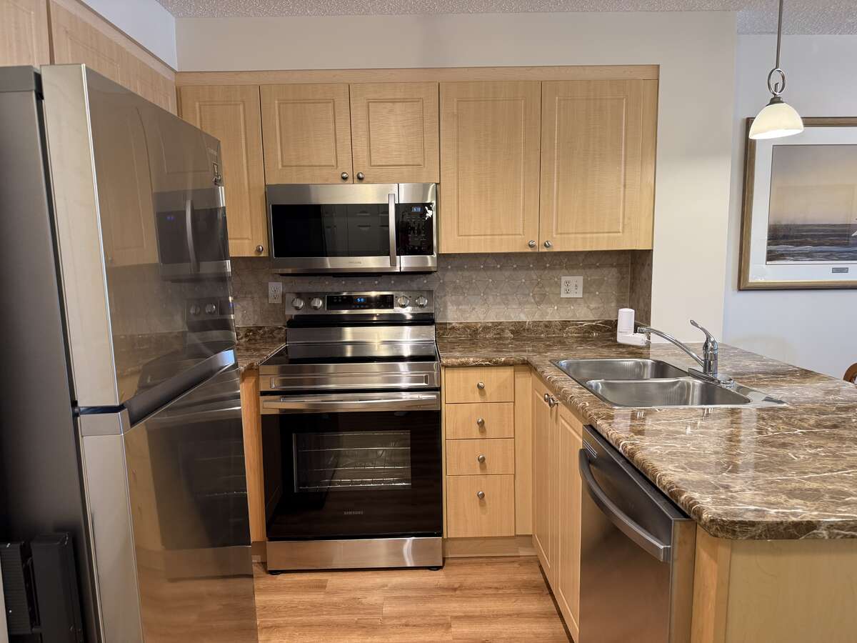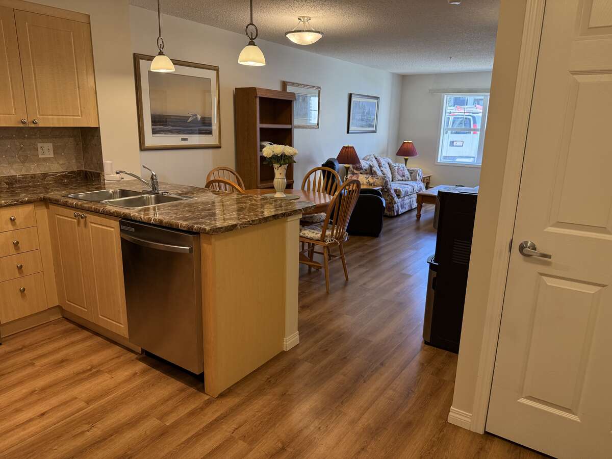DISCOVER YOUR DREAM HOME! MOVE IN READY! Immaculate, Spacious and Inviting condo on main floor. Desirable location, only minutes to all amenities: Anthony Henday, grocery & liquor stores, banks, gas stations, dollar store, fast food stores, schools, public transportation and many more! BUILDING has recently UNDERGONE major renovations (2024) new roofs, balconies, new carpet and paint. Other features include a patio with gas hook up, HEATED UNDERGROUND assigned parking stall (conveniently located close to unit), newer Samsung stainless steel kitchen appliances, newer Whirlpool stackable washer/dryer combo, laminate flooring throughout with no transitions, & is PET FRIENDLY! MONTHLY CONDO FEES: $437 INCLUDES ALL UTILITIES! FURNITURE IS INCLUDED!