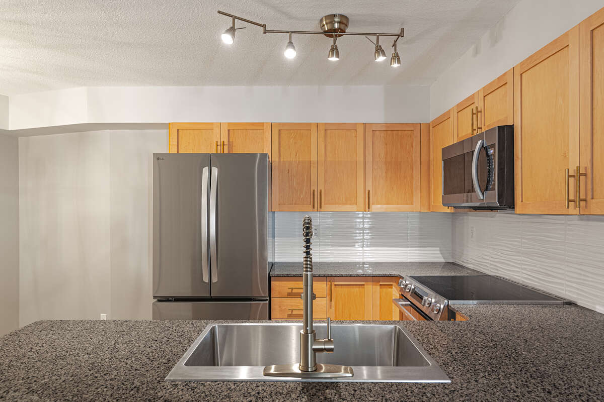 Amazing condo with sunset views in South Terwillegar. Two bedrooms and two full bathrooms with one being an ensuite through a walk in closet in the master bedroom. New vinyl plank flooring throughout, new paint throughout, new lighting and a newer appliances with a new fridge and glass top Boch range. Beautiful maple cabinets and granite countertops throughout. New bathroom and kitchen taps as well. The kitchen has considerable cabinets and ample area for a large dining room table, in-suite laundry and the suite is mere steps from the two elevators. The building has ample visitor parking and secure titled underground parking for the suite that is again very close to the elevators. Very quiet and secure building that is close to great shopping in the Terwillegar and Windermere shopping complexes that have large grocery stores, fantastic restaurants fitness clubs, movie theaters and other big box providers. A small fitness center is available to tenants as well and mail service is provided in the lobby as well as a mailing station for letters and small parcels. Finally, there is a hook -up on your balcony for your gas barbecue.