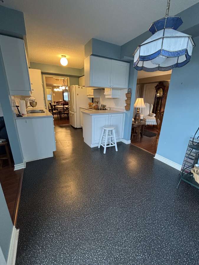 Bright white kitchen with updated flooring
