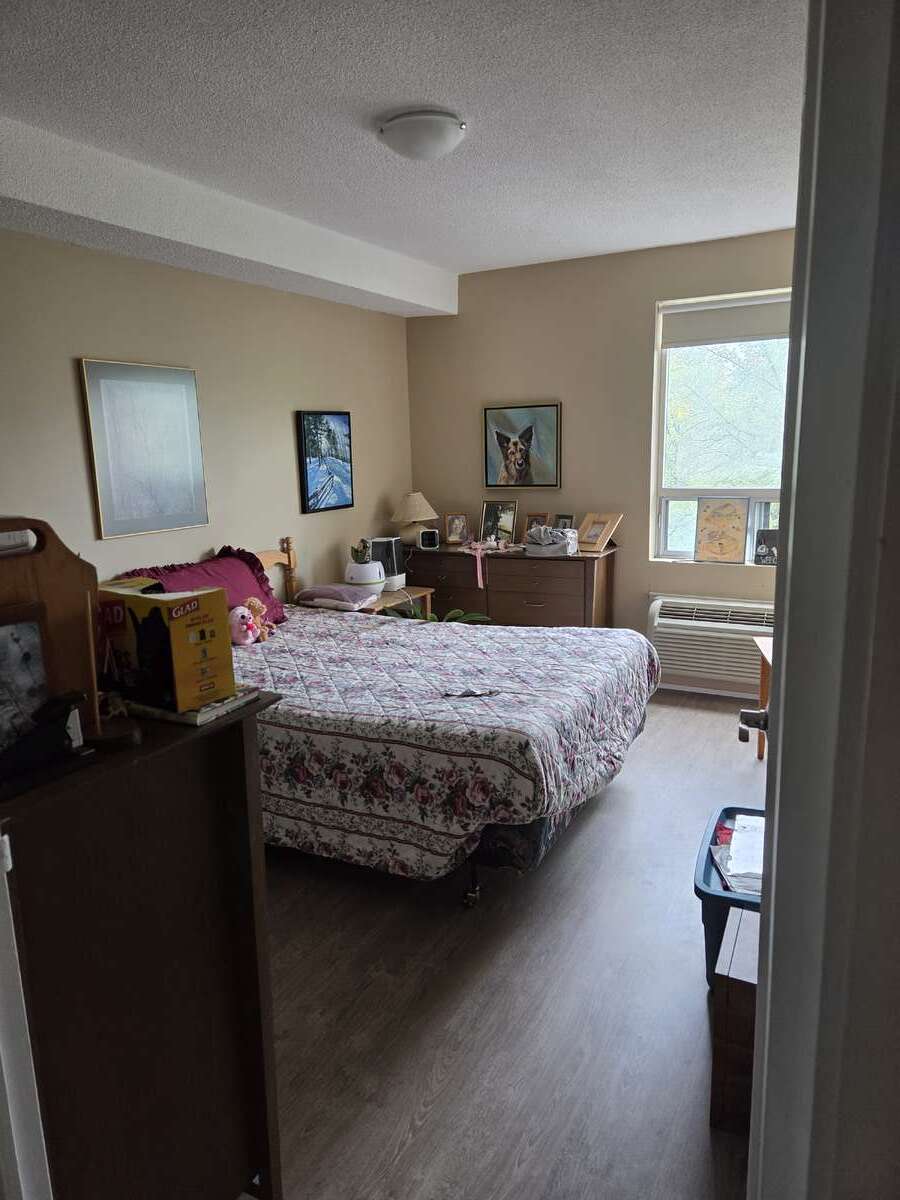 Bright, clean and comfortable two-bed, one-bath unit with balcony for sale in desirable Heritage North condominium building
