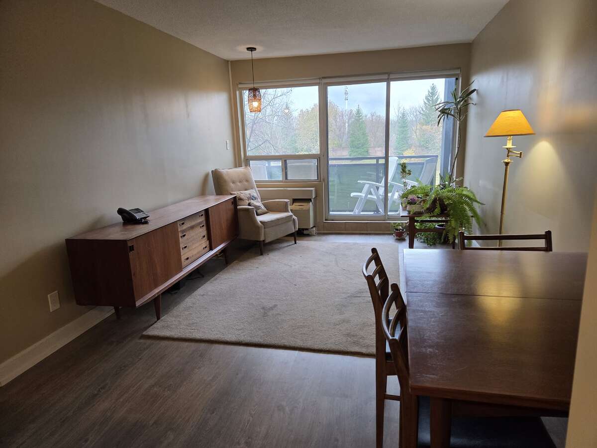 New in 2020 laminate flooring with condo-approved underlay in living room, hallways, bedrooms and closets