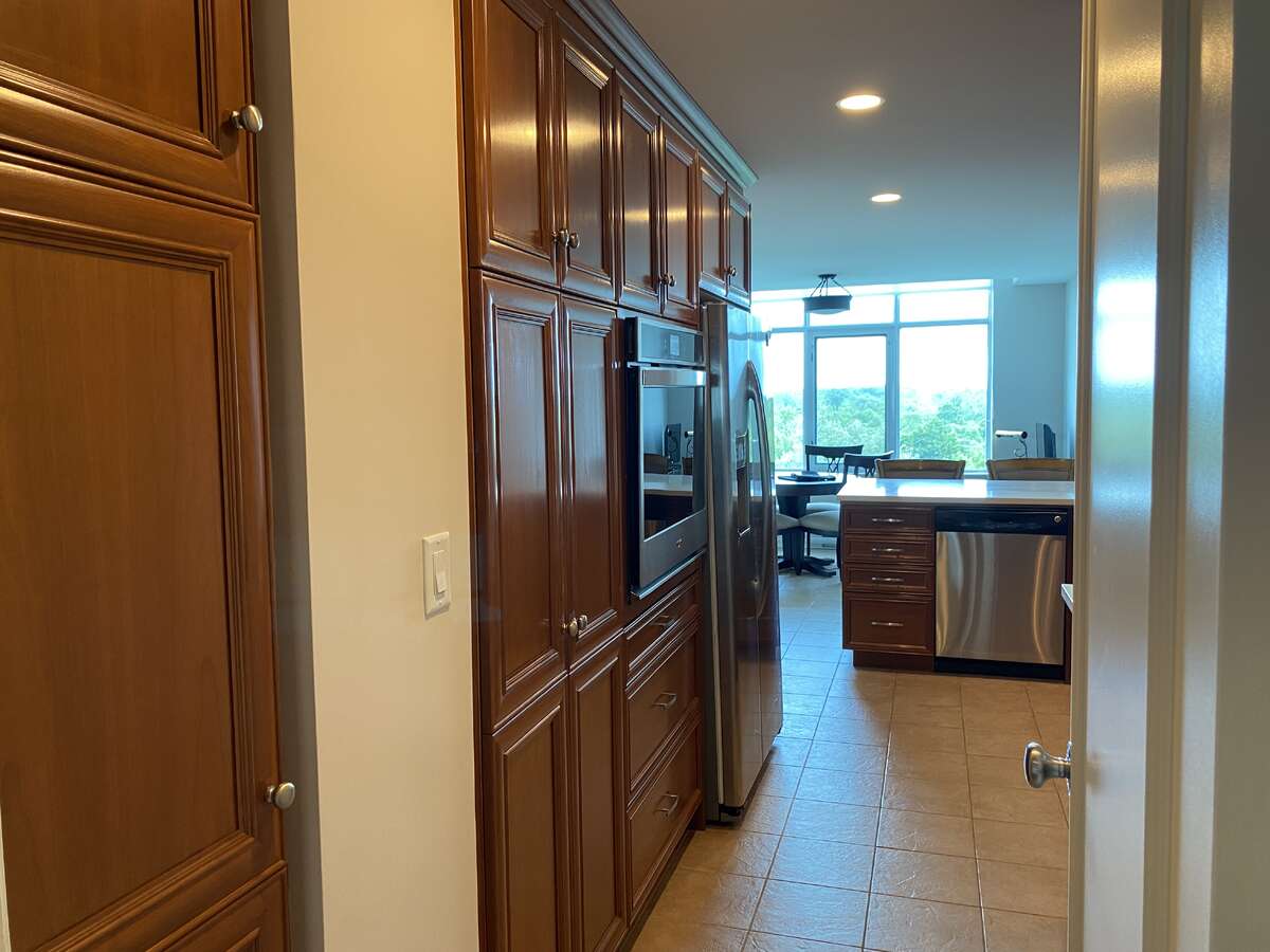 Step into a bright, open-concept living space designed for seamless flow. The chef’s kitchen is a centerpiece, boasting high-end stainless steel appliances, sleek quartz countertops, and a large island ideal for hosting gatherings. Custom cabinetry and designer lighting elevate the space, creating a warm yet refined ambiance. The adjacent living and dining areas feature expansive windows that frame stunning river views, filling the home with natural light.