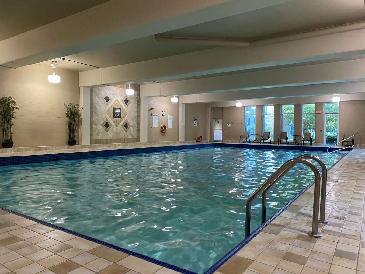 Residents enjoy resort-style amenities, including an indoor pool, fitness center, tennis courts, and 24/7 security for peace of mind. The property comes with two parking spaces—one equipped with an EV charger—and two spacious storage lockers, catering to modern lifestyle needs.