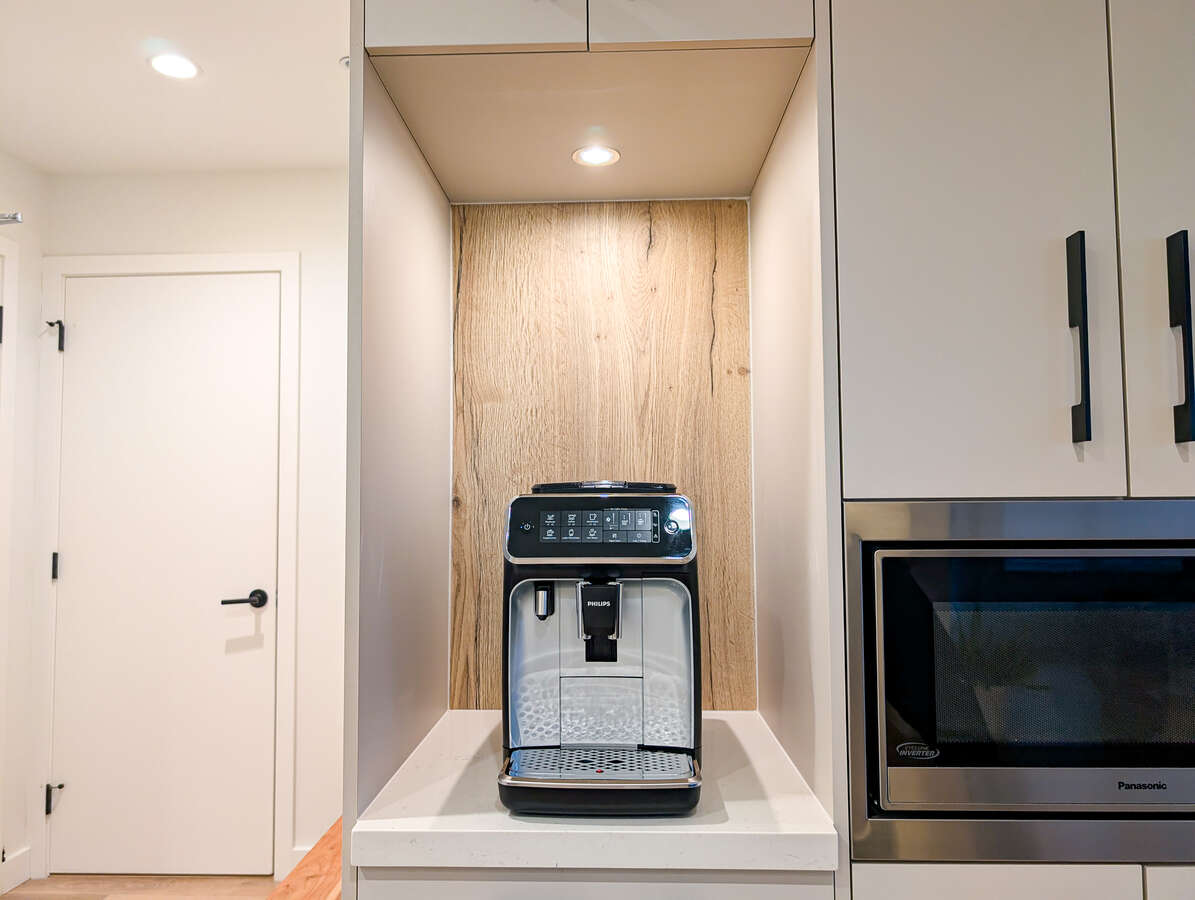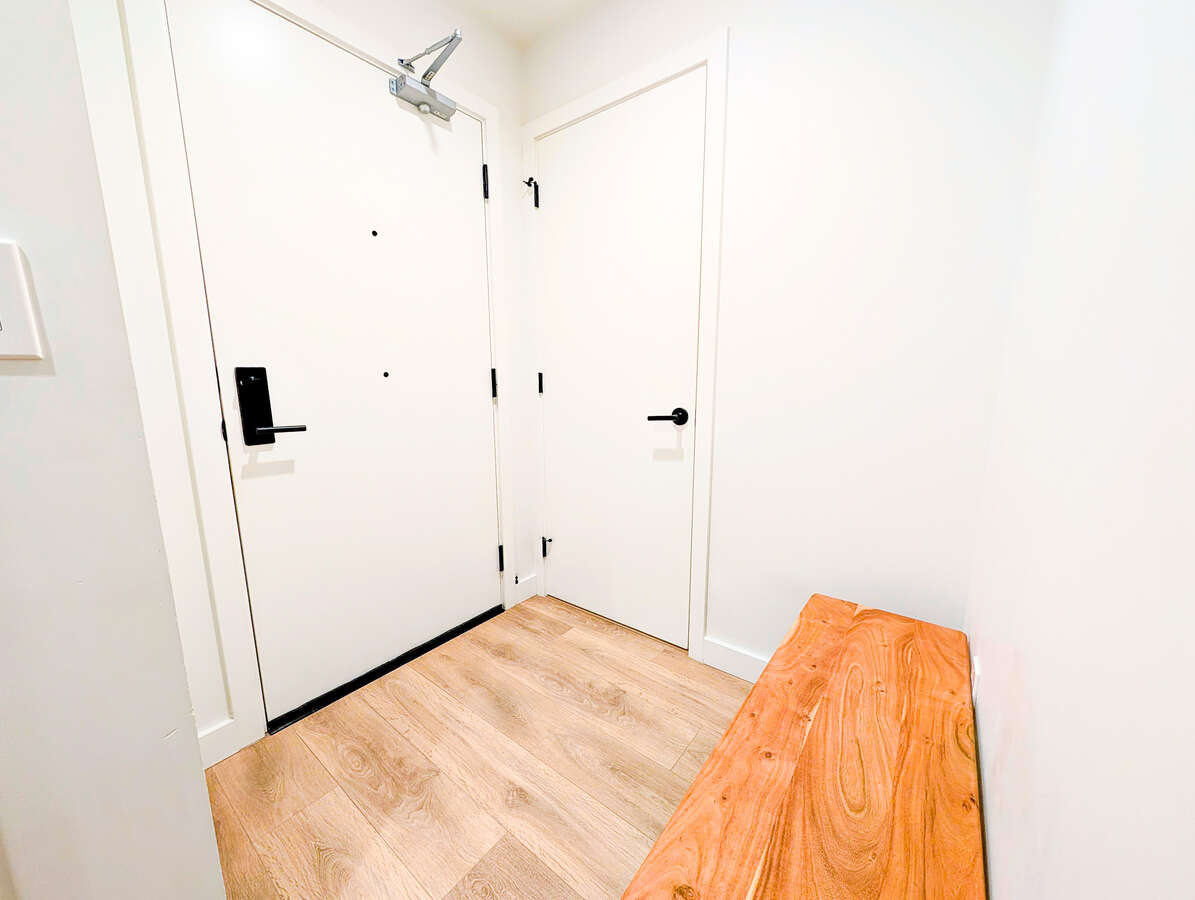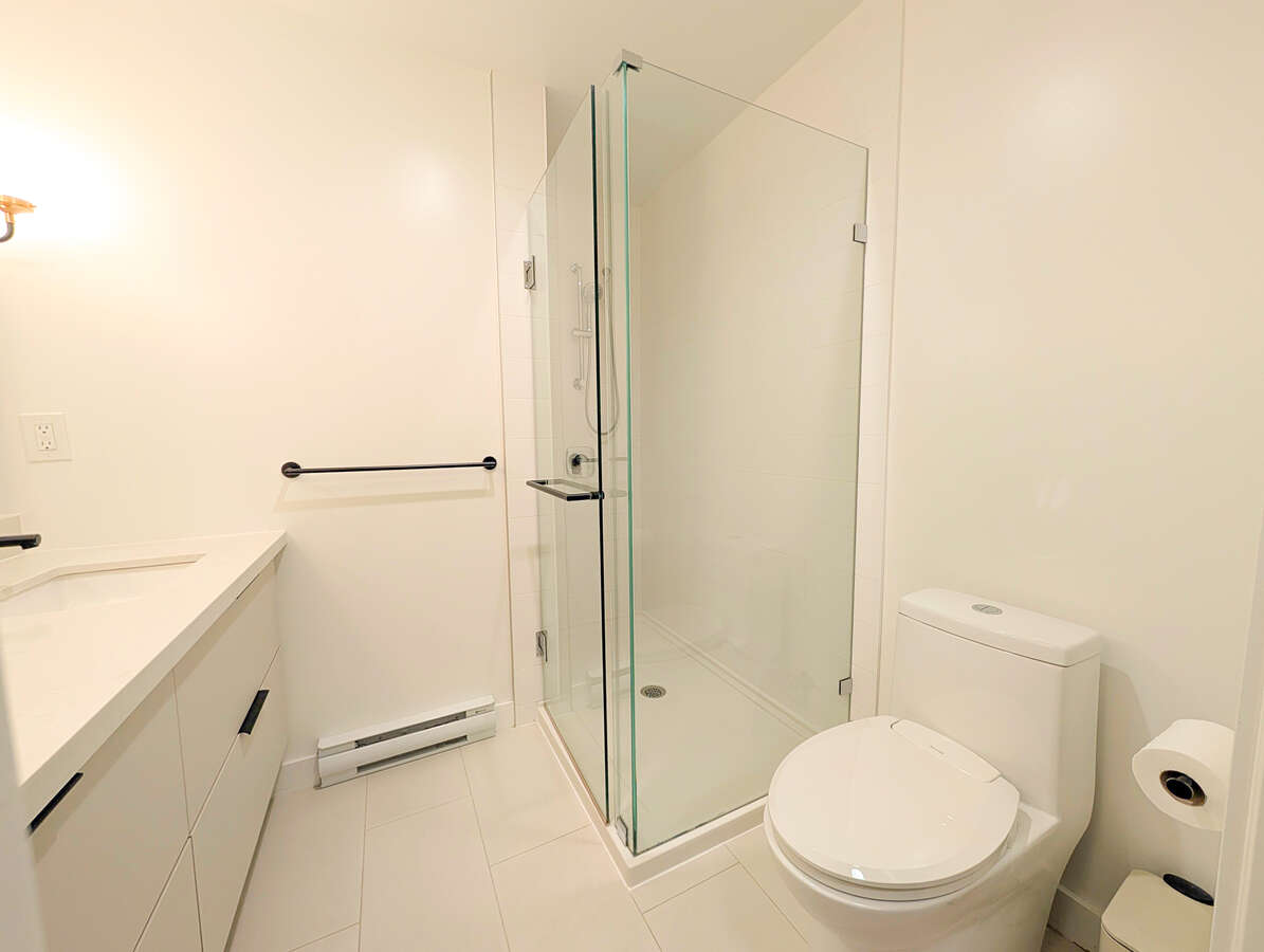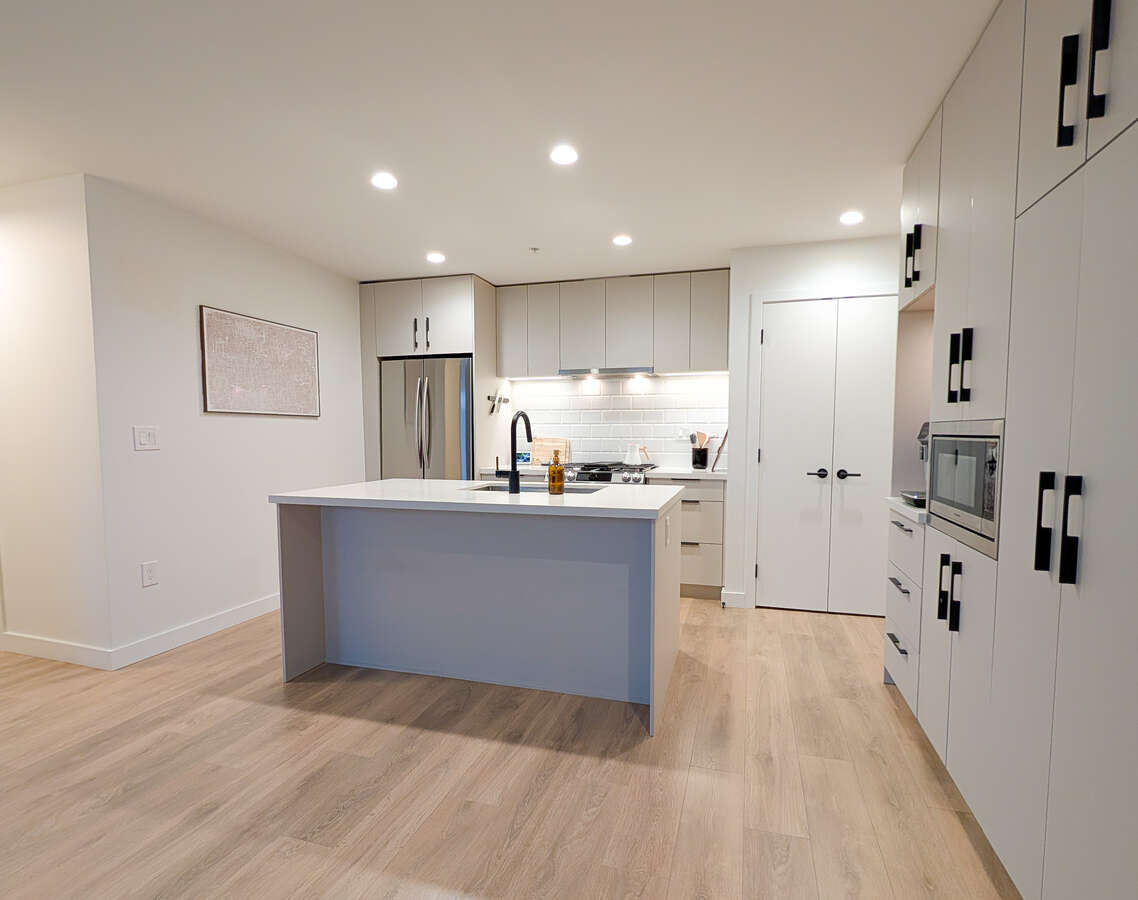 Welcome to The George by award-winning Marcon. Just a 5-minute walk to SkyTrain and West Coast Express, one of Port Moody's best transit locations. This bright corner home offers open concept living with laminate wood flooring throughout. The modern kitchen features quartz countertops, full sized S/S appliances and soft-close cabinetry flowing into a spacious living and dining area with high ceilings. The primary bedroom fits a king sized bed and ensuite with double vanities, while the second bedroom is well-separated for privacy. This home comes with 1 EV ready parking and 1 large storage locker. Amenities include a club house, dog wash, car wash, EV Level 2 charging, workshop, bike and kayak storage.