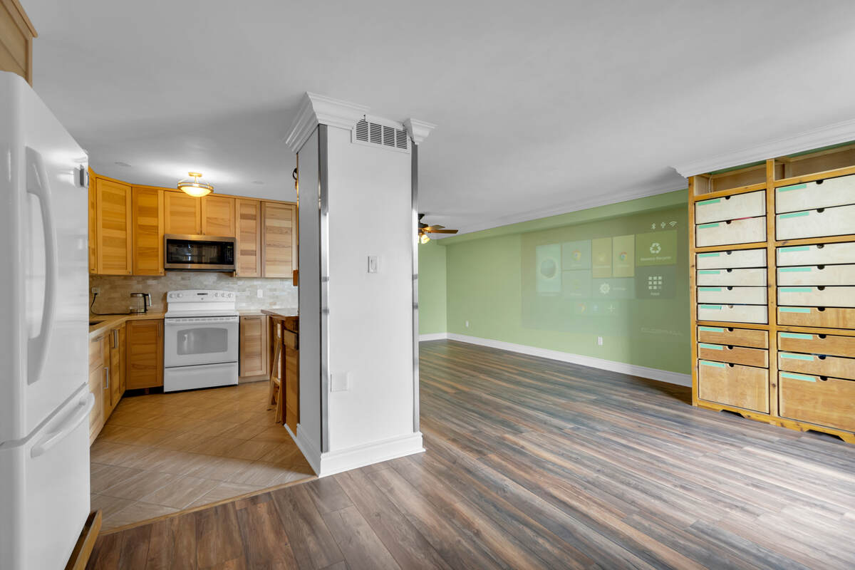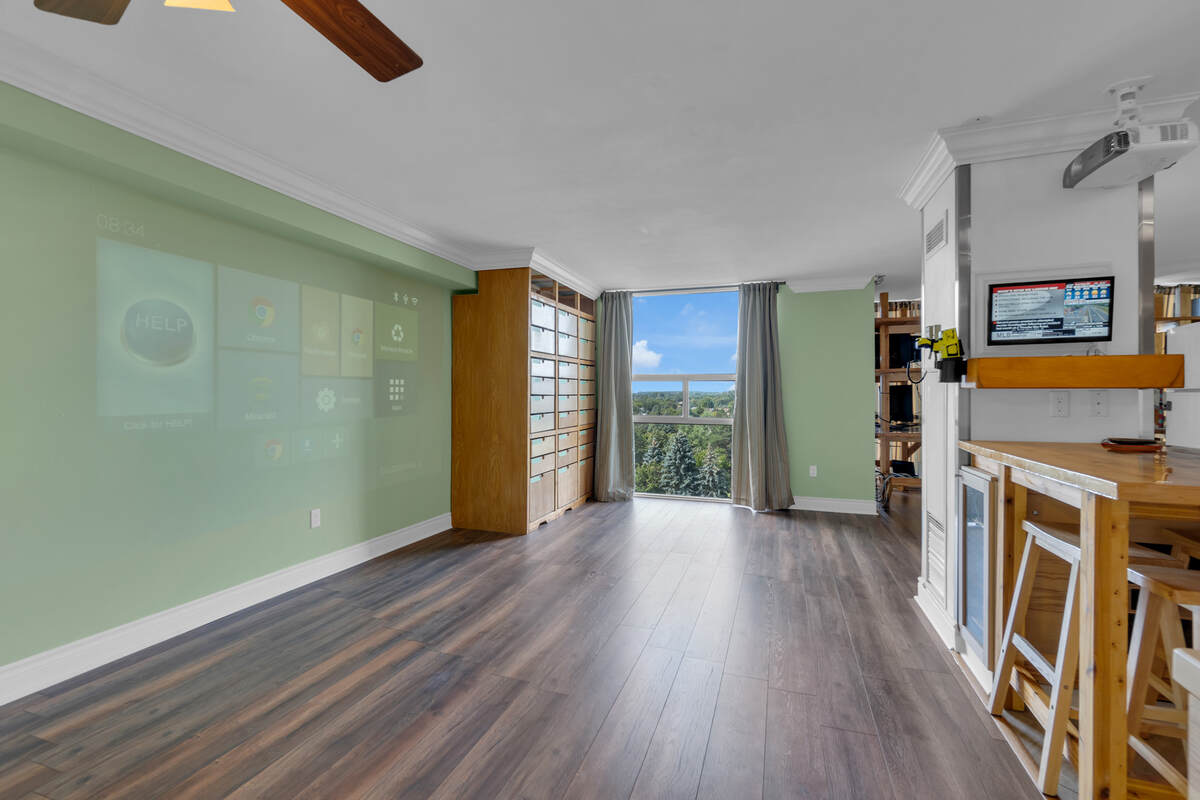 Open-Concept Kitchen With Solid Wood Ash Cabinet Doors, High -Quality Multimedia Projector Turing the Living Room Wall Into a 135-inch Home Cinema, Ensuite Bathroom With Luxurious Jet Bathtub.
