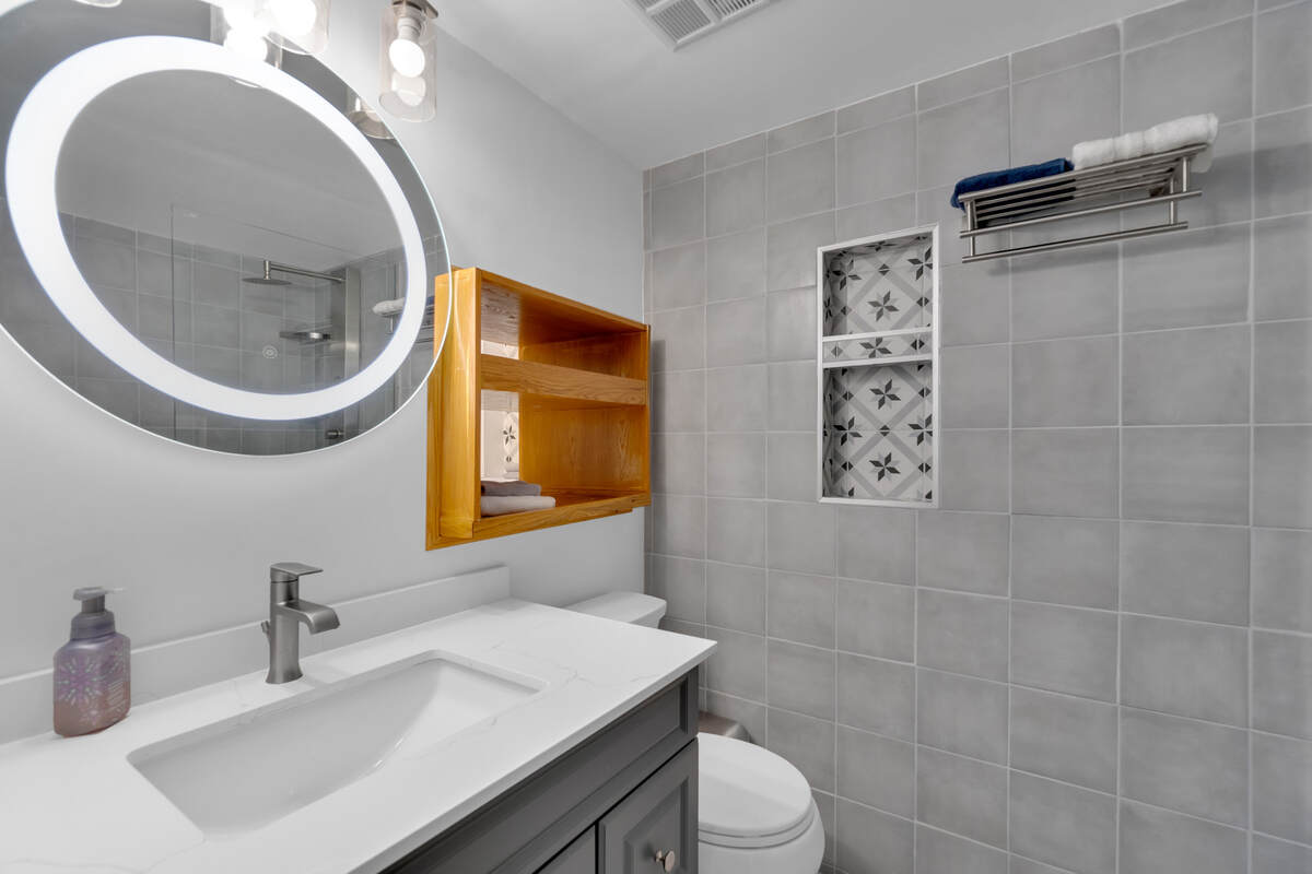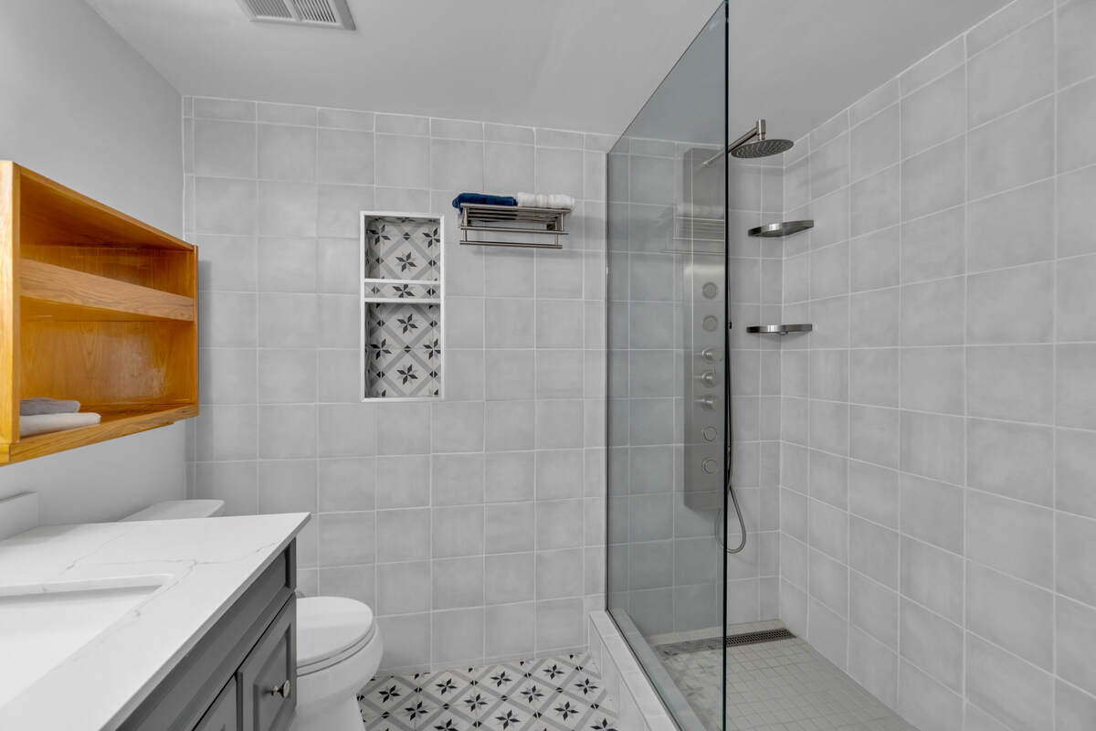 Spacious Wall Niches and Custom-Made Shelving in the Bathrooms