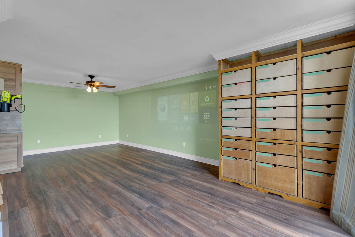 Preparation for Additional Kitchen Lighting, Sound Line from Projector to the Opposite Wall Behind Crown Moulding