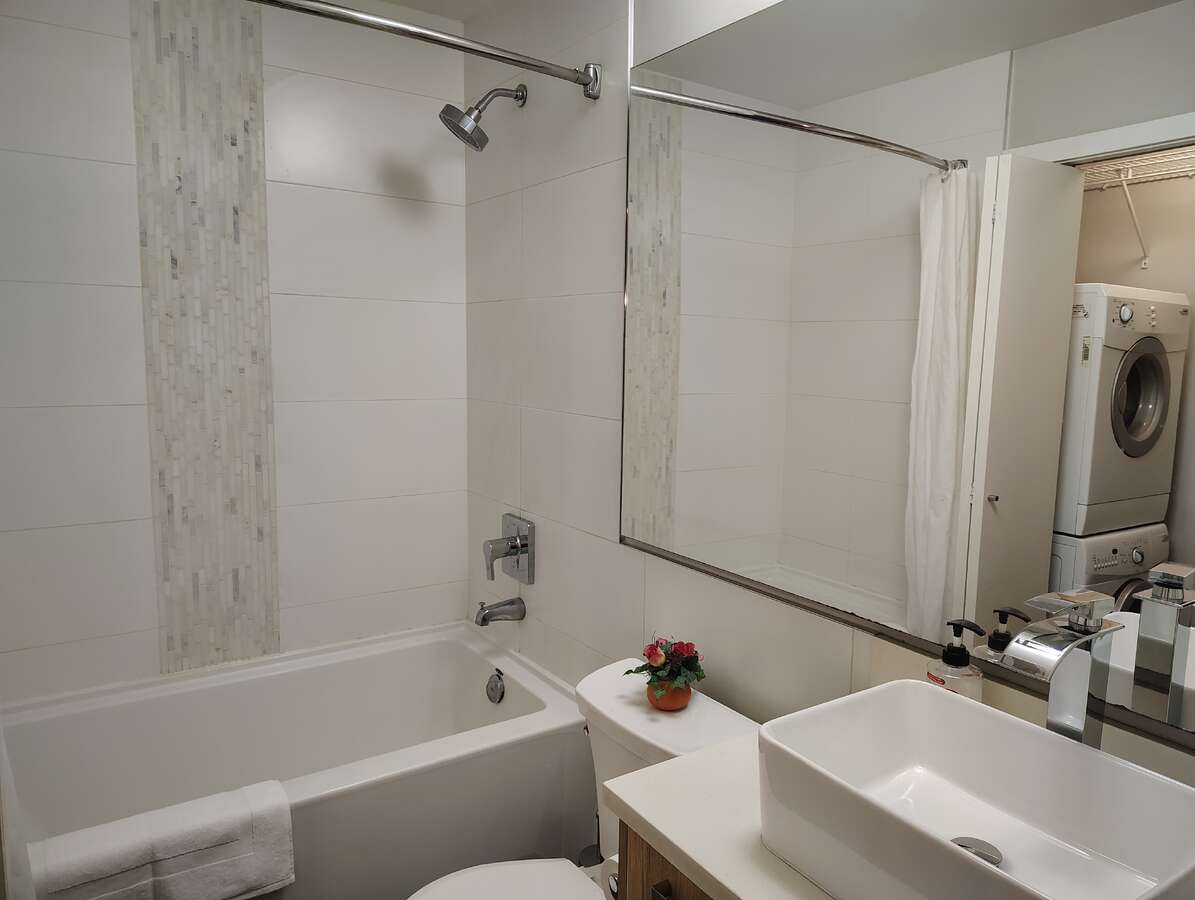 Great designer layout, small but comfortable, laminate flooring, 9 ft ceiling, quartz counter, pre-wired cable/high speed internet, big east facing windows, balcony, soaker tub, fresh paint, new bathroom sink and faucets, in suite laundry, secured underground parking, large storage locker, low strata fee, great amenities, gym, pool, ping pong table, fully rain-screened, well- managed building. Cats, dogs friendly, no age restriction, rental ok. Move in ready. Some photos are staged.