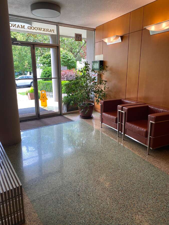 Parkwood Manor Ltd. equity co-op bachelor unit in a highly desirable location—just one block to English Bay and Stanley Park—in an exceptionally well-maintained building. Guided by a 2015 engineering report, major projects include: exterior concrete and window frames painted (2016), new roof and anchors (2018), stairwell vertical PEX piping (2019), full elevator modernization with interior cab upgrade and fire-safety enhancements (2020), FOB security entry (2020), new IBC 399 boilers (2021), new hot-water storage tanks (2022), security cameras (2022), and garage restoration (2024). Additional improvements: lobby renovation (2007); upgraded laundry and bike rooms (2010); hallways painted with new carpet on all floors (2014); and horizontal PEX piping on all floors (2014). Includes an indoor secured parking stall and storage locker. No pets. Non-smoking. No Rentals. Residentcaretaker on site .