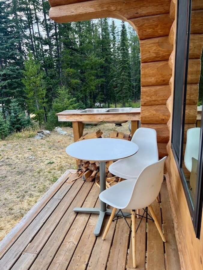 1 acre lot Freehold with landscaping and firepit area backing onto crown land