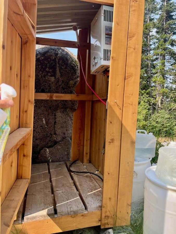 Wired with plugs, lights, appliances – solar powered with lithium ion battery bank and generator back up