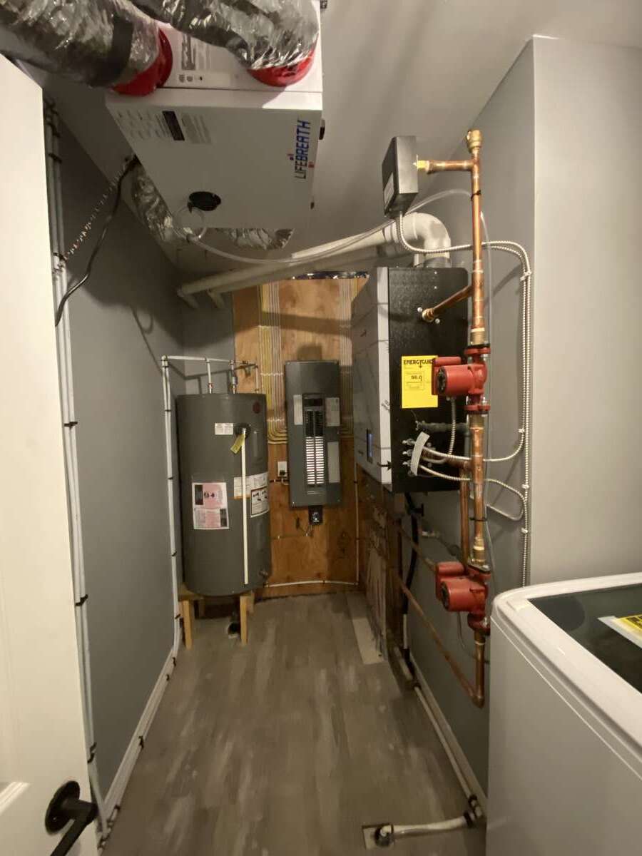 The second home built in 2033 and offers 1,250sq. ft. slab on grad with propane in floor heating. 2 bedrooms and 1 bathroom. This home has 3 stainless steal appliances and is an open concept living space.