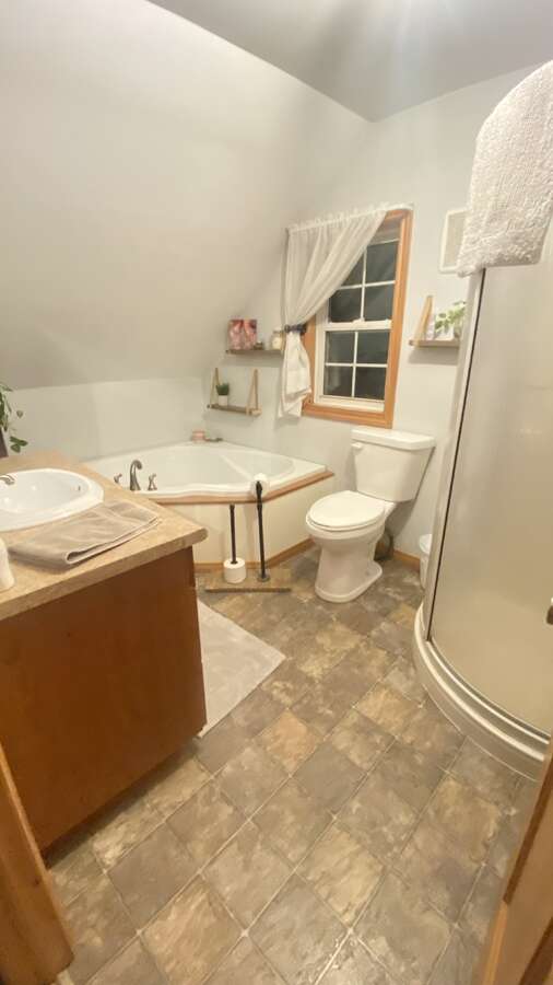 The main farm house offers 1,400 sq. ft. With 2 bedrooms and 1.5 bathrooms. A spacious kitchen with island, cherry hand crafted cupboards and 4 stainless steel appliances. Just off the living room is a pine lined screened in porch, a great place to sit and enjoy your morning coffee with a good book. This home also offers a breezeway that connects the oversized two car garage to the house.