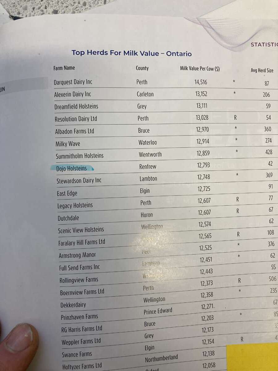 province of Ontario for top milk value. You get both! Volume and Quality.