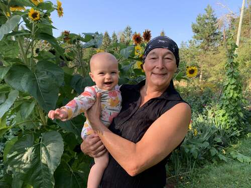 Dugout, fruit trees and perennial gardens