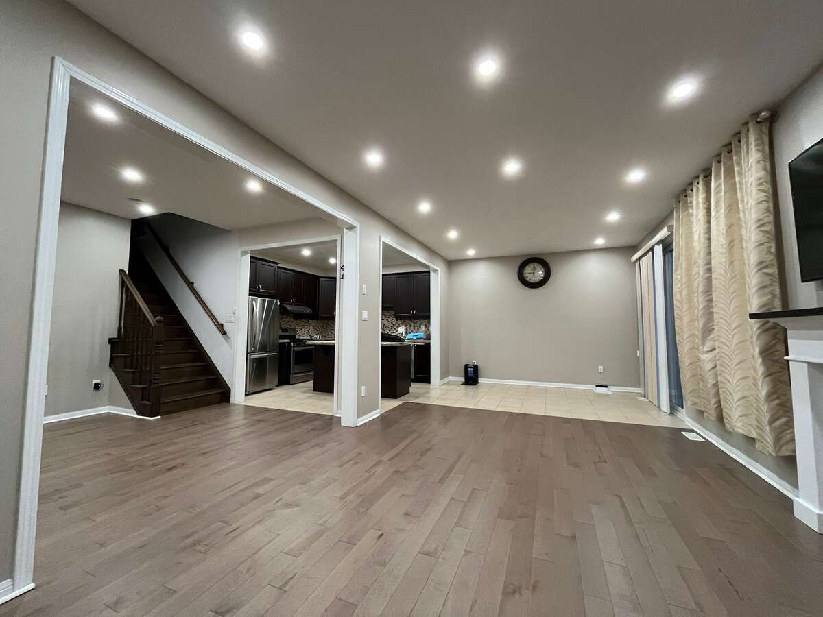 • Elegant Living Space: An open-concept layout with rich maple hardwood floors and new LED pot lights throughout for a bright, modern feel.