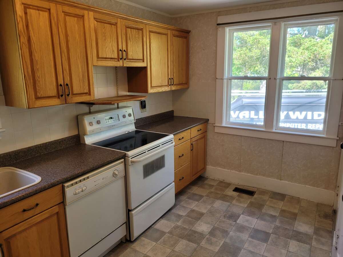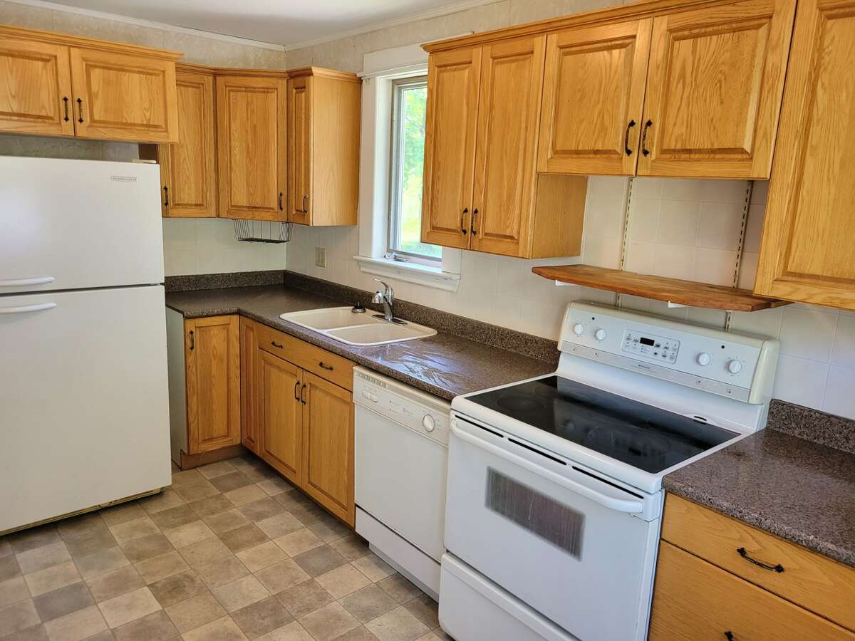 Functional full kitchen with large fridge, stove, and dishwasher included
