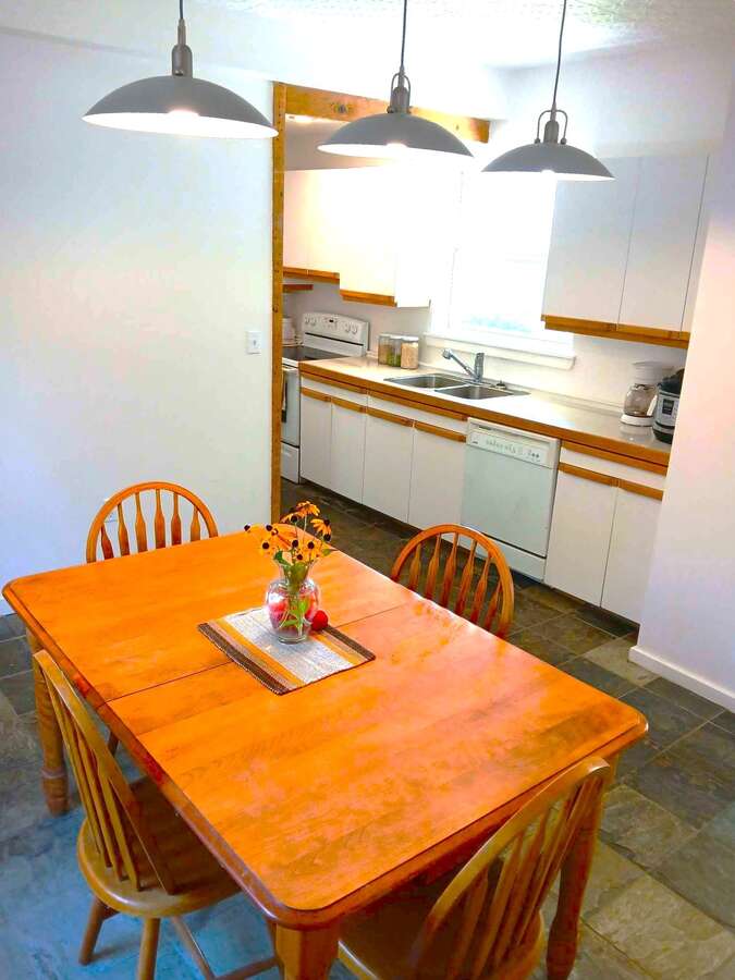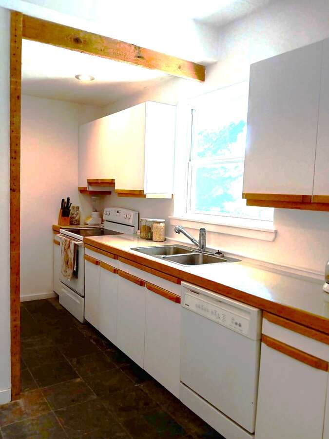 - real slate flooring at entrance ways, kitchen and bathrooms