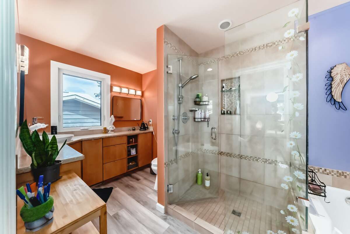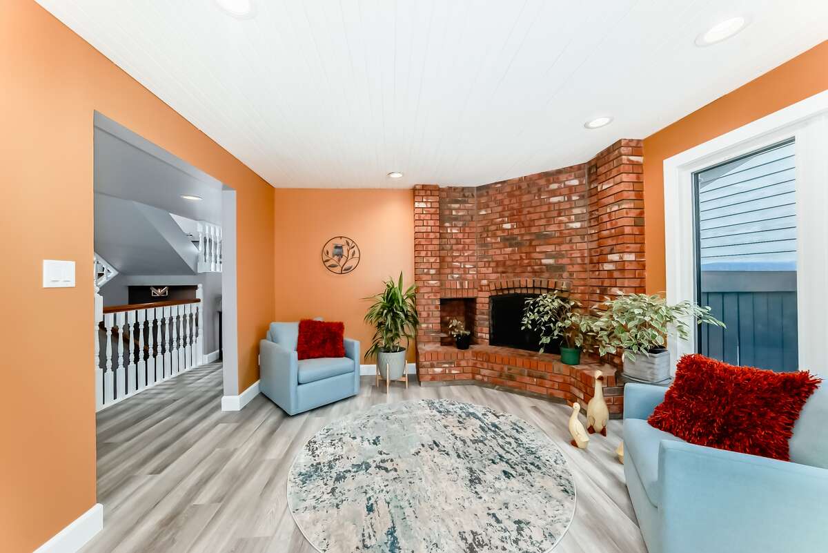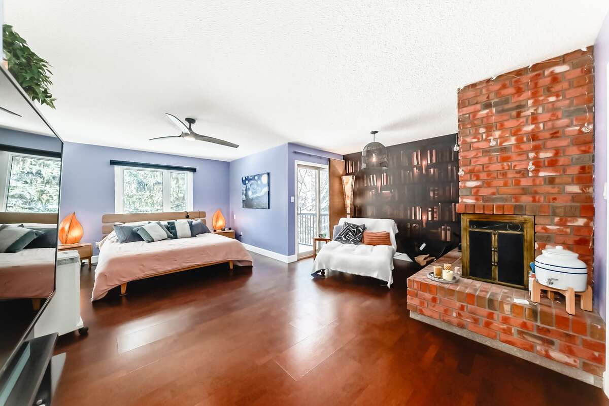 The master suite on the upper floor boasts a wood burning brick fireplace creating a warm peaceful atmosphere. With a private balcony and plenty of room for king size furniture! There are 3 additional bedrooms and a 4 pc family bath on the upper level.
