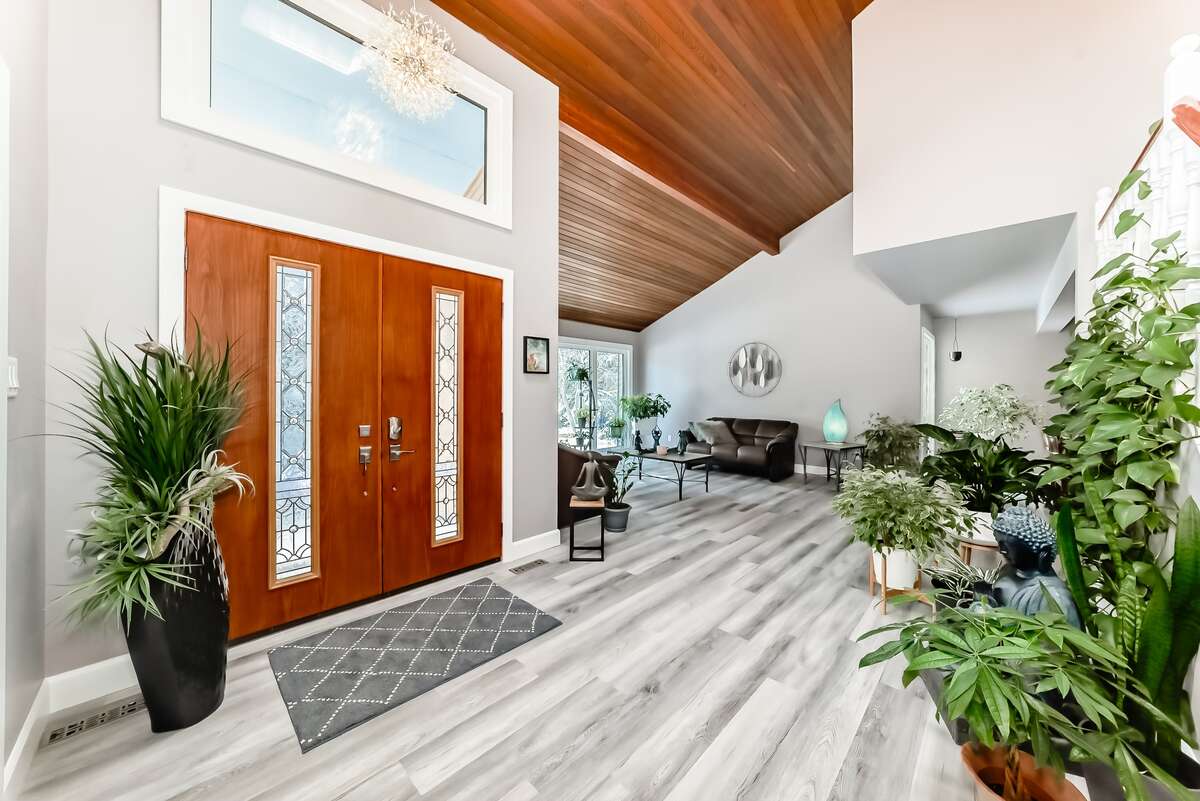 Fully developed lower level provides 1 extra large bedroom with egress window and large closet organizer. Another good size bedroom with egress window on this level with a partial kitchen and laundry area with a cold room. Very large area for family room gaming or fitness equipment on this level. Could easily be turned into a suite for extra family members. Lots of storage space. Brand new triple pane windows throughout the house. New flooring on the entire main floor.