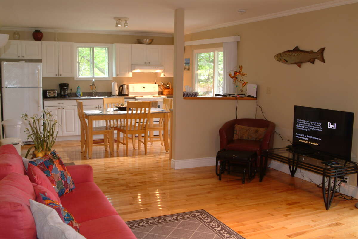 This turnkey package includes everything you need to seamlessly take over this successful business, family compound or residence only including furnishings, supplies, equipment, established business number and top ten ranking URL. Year-round accommodations of 15 rooms include 5 cottages with full kitchens (4x2 BR and a 1 BR that is wheelchair accessible); 3 studio apts. with kitchenettes and ocean view balconies; 1 oceanfront 32 ft. camper; 1 converted, literal Boat house; PLUS a 2 bedroom house next door with private oceanfront; Owners willing to advise through business take over. HST partially applicable on the purchase price. The main house embraces the ocean views, with two story windows from the great room.