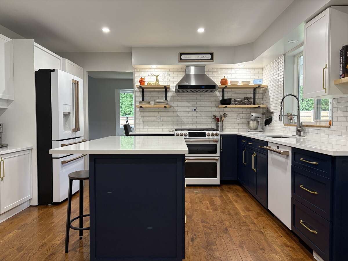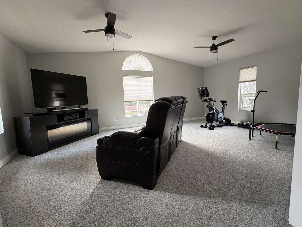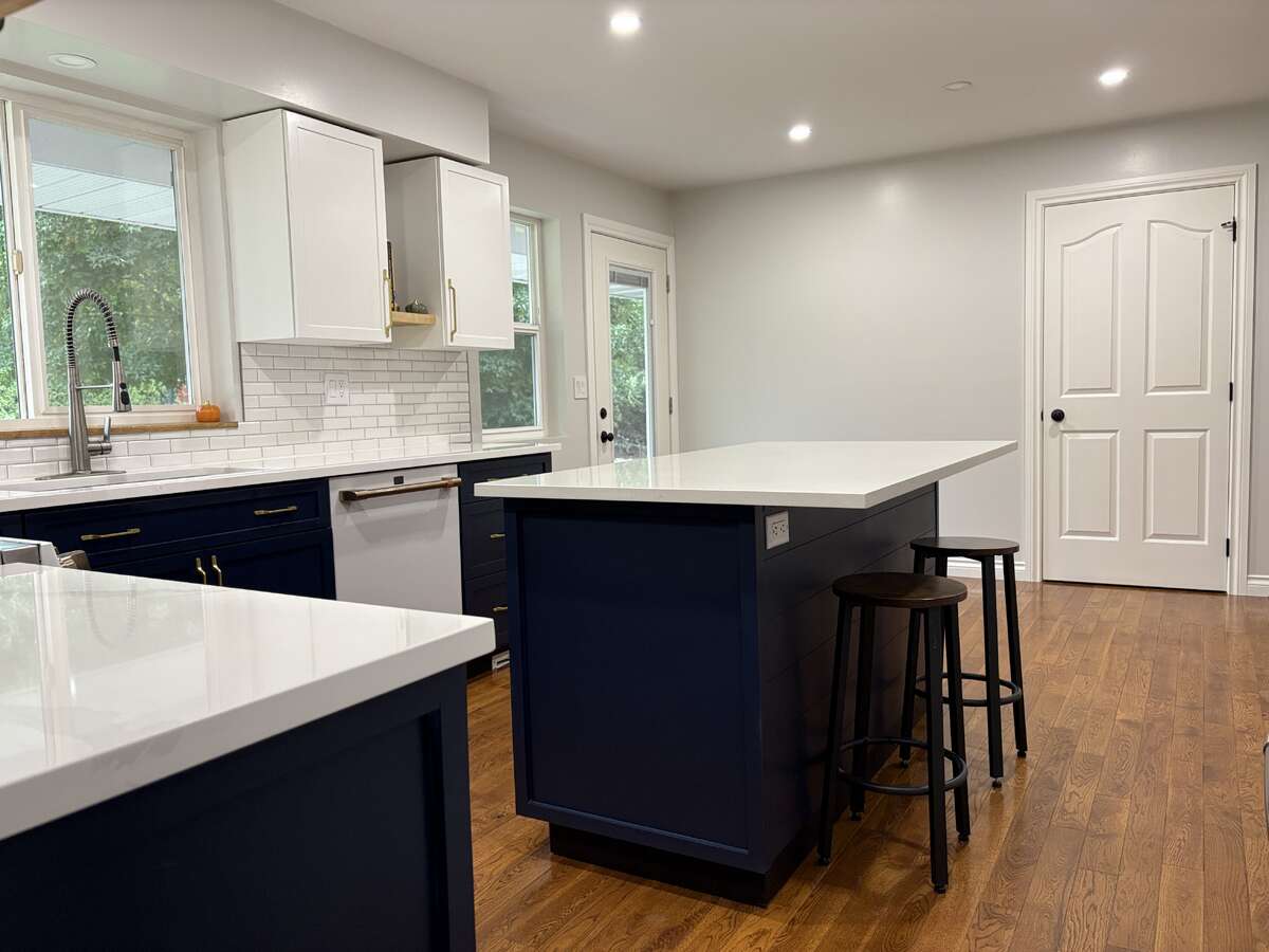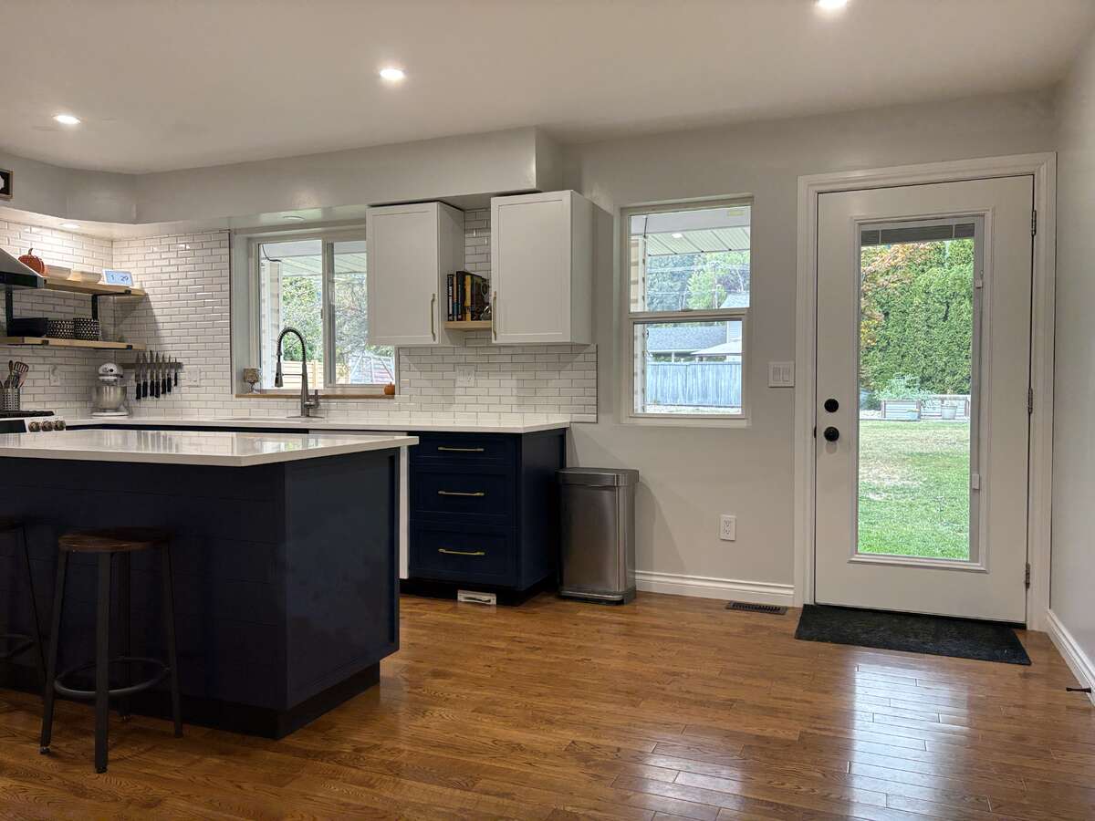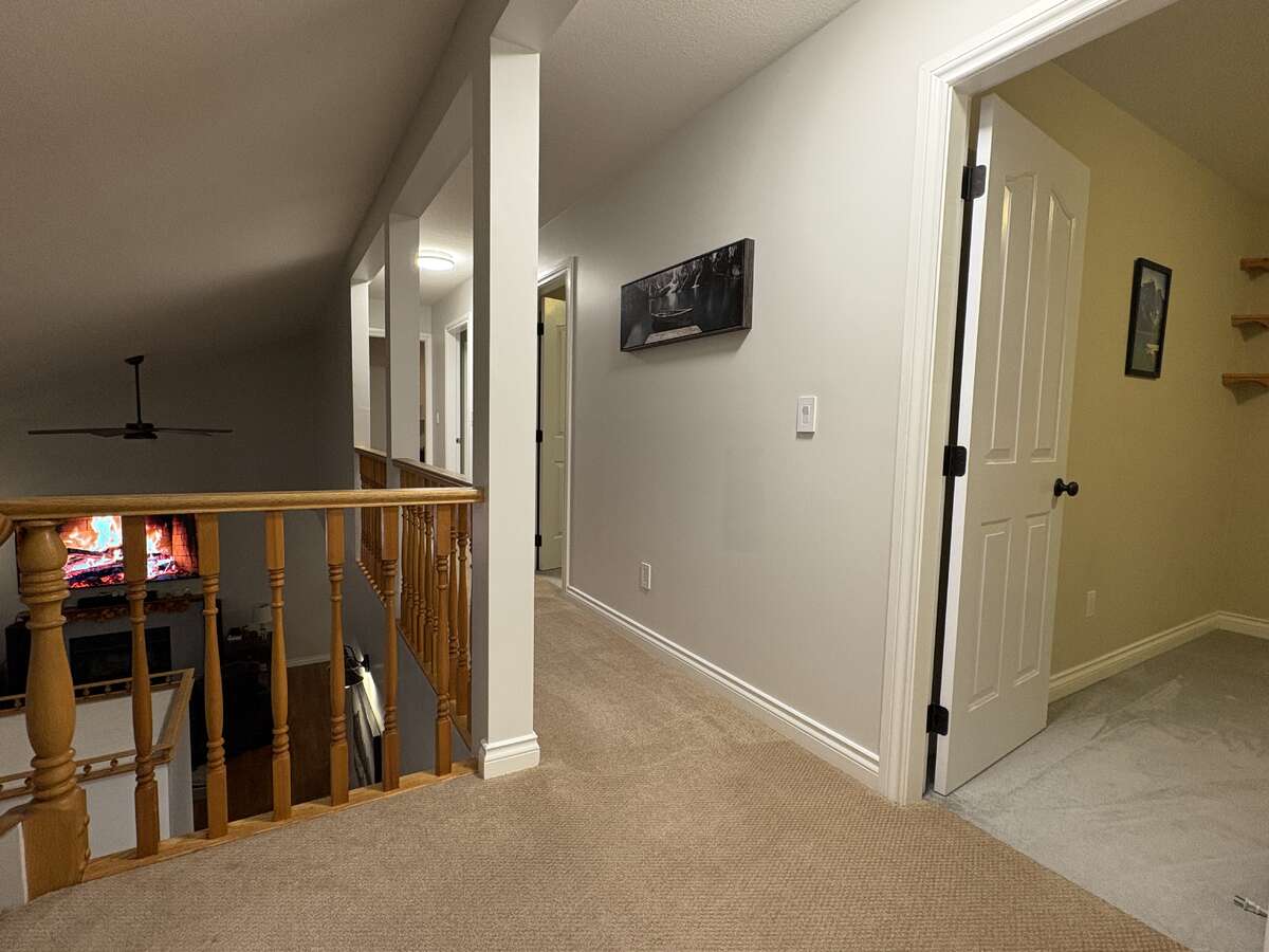 The main floor features vaulted ceiling showing off a spacious living room with hardwood floors throughout, gas fireplace, a bright dining area, and an open freshly renovated kitchen with an island and coffee bar nook, complete with brand new quartz countertops and new high end GE Cafe appliances. A full bathroom, family room, laundry, and den complete the main level. Upstairs you’ll find four generous bedrooms, including a extra large primary master suite perfect for a gym or home office, plus two full bathrooms
