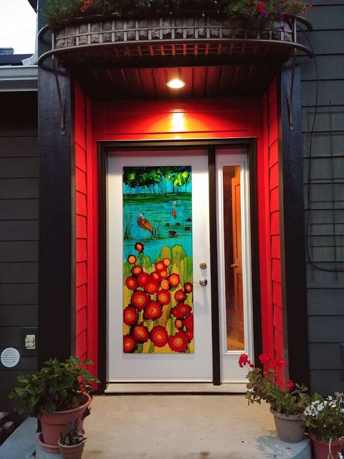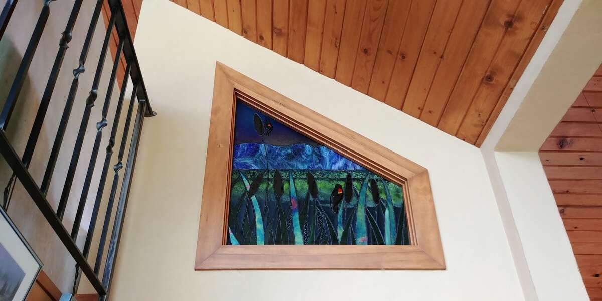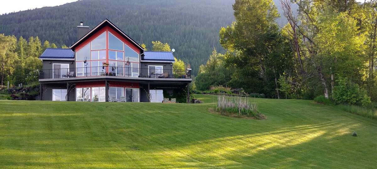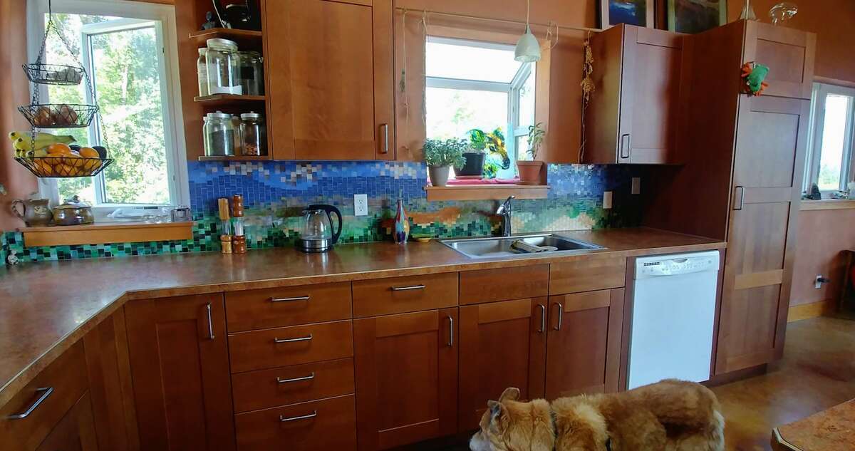 Basically this is a two storey, two bedroom home with a loft which could become a 3rd bedroom. And that's where "basic" ends. The walls are natural plaster which contains bits of bullrush fluff from just down the road. The kitchen backsplash mosaic contains hundreds of pieces of stained glass, arranged to represent scenes from the Creston Valley. Another glass mosaic wraps around the soaker tub. The geothermally heated floors have been painted to resemble natural stone. The walkout lower level, with its own kitchen and high ceilings, is a bright and yet cozy space.
