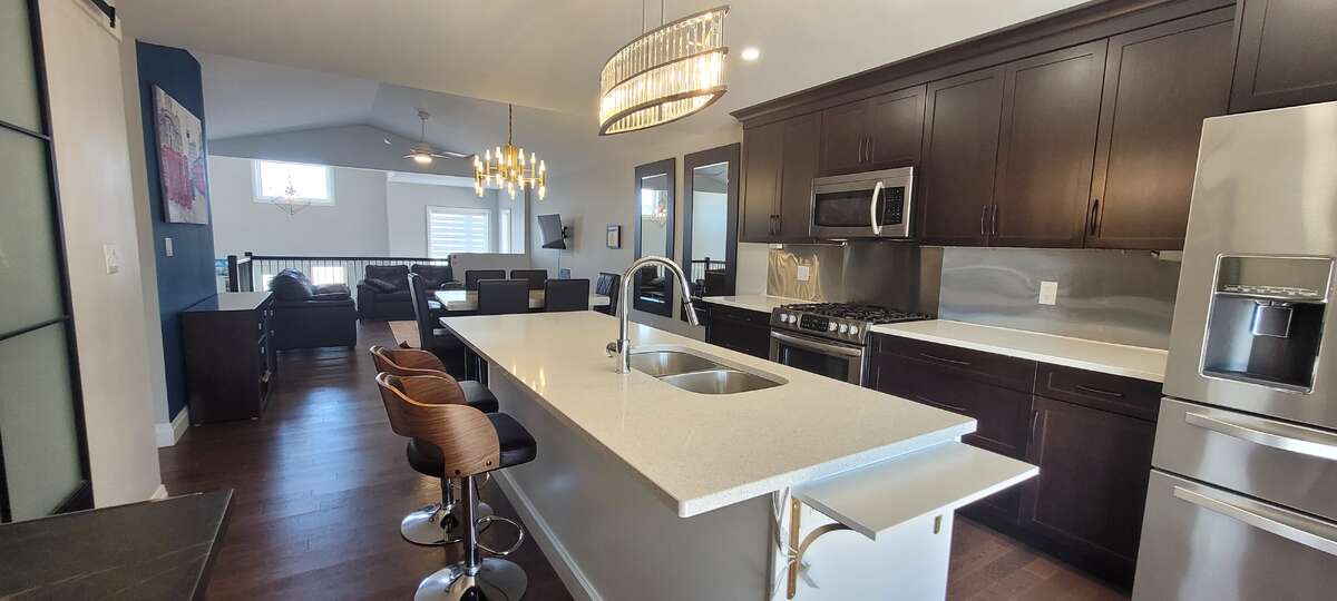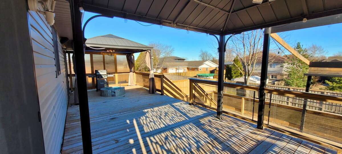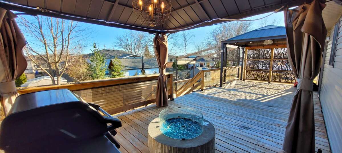 Inside, you’ll find a spacious open-concept layout filled with natural light, showcasing a stunning kitchen with a large island, garburator, and stainless steel appliances. Basement is partially finished, offering excellent versatility and room to grow .The living space flows seamlessly to a two-tier deck complete with gazebos and private hot tub access directly from the primary bedroom.