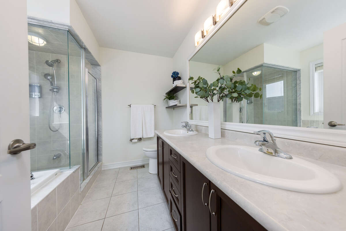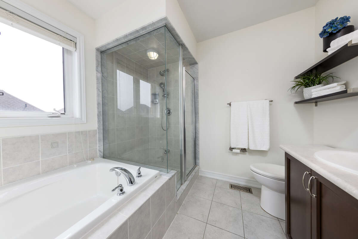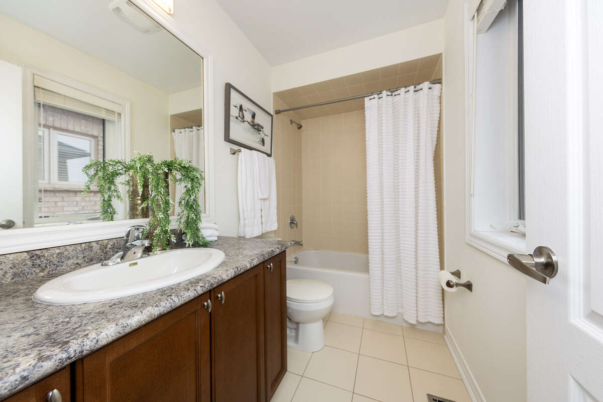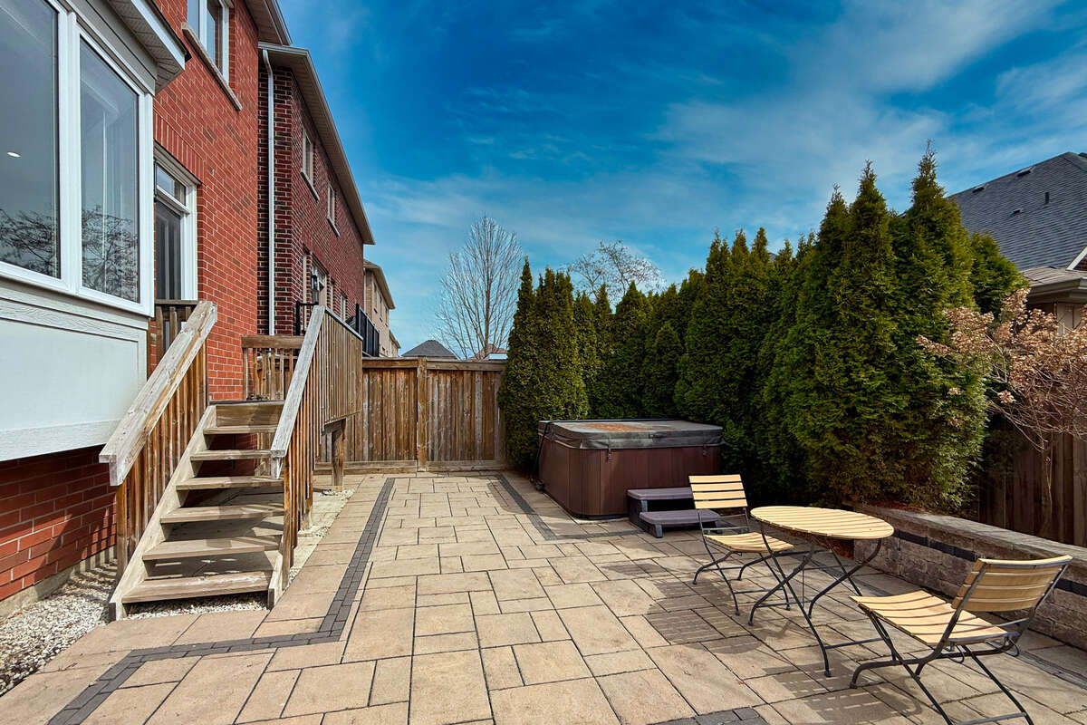 The bright, eat-in kitchen features granite countertops, a central island with a sink, and a walk-out to a relaxing backyard with a patio. Ascending to the second level, you will find a versatile, sunlit family room that provides a dedicated area for media, entertainment, or a home office. The primary bedroom suite offers a generous walk-in closet and a five-piece ensuite bathroom. Three additional bedrooms—one of which features its own private ensuite—provide ample space for family and guests. Hot Tub As-Is (sellers never used it during their ownership of the property).